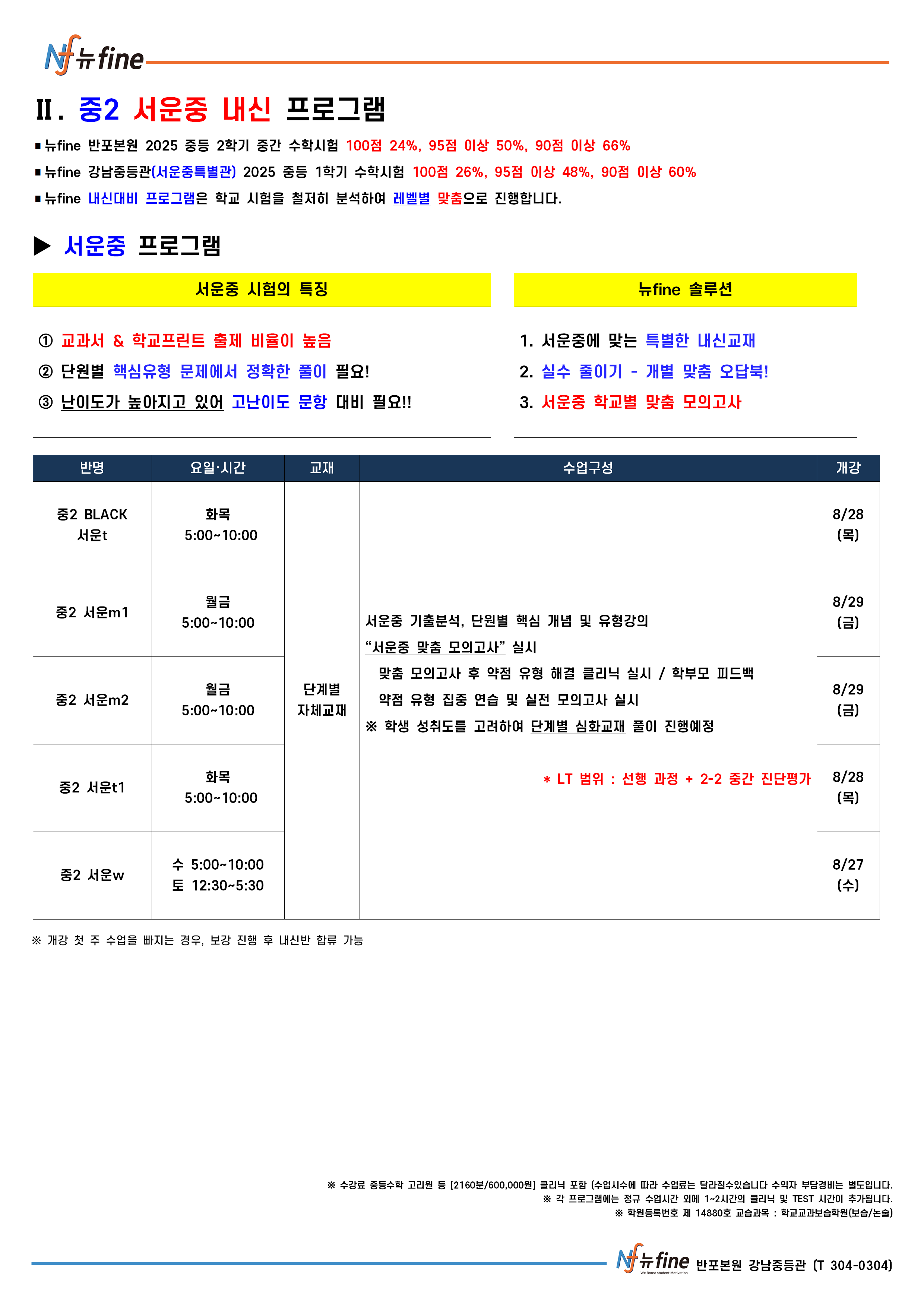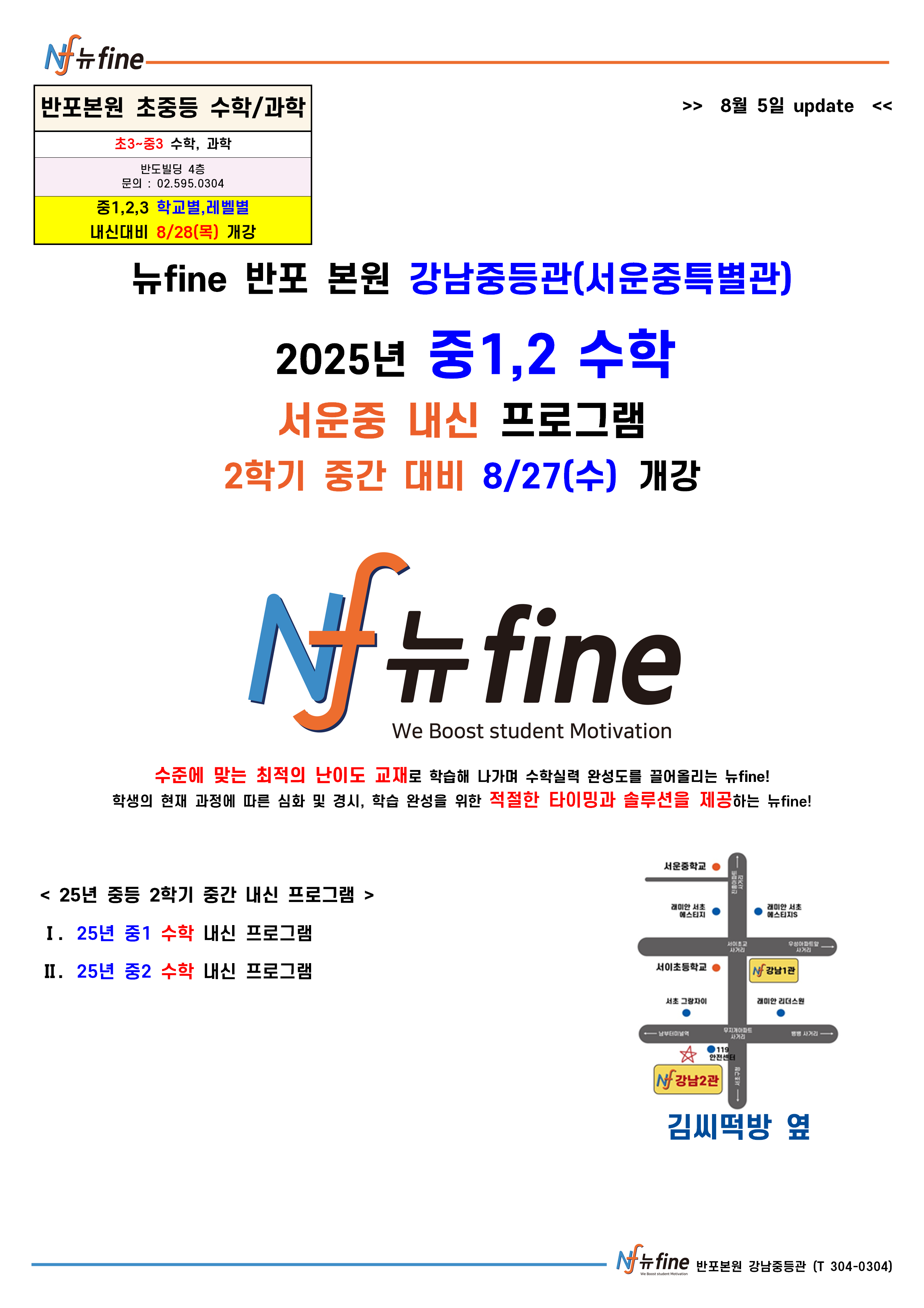 2학기 중간 내신대비 수학 프로그램 (8/27(수) 개강)