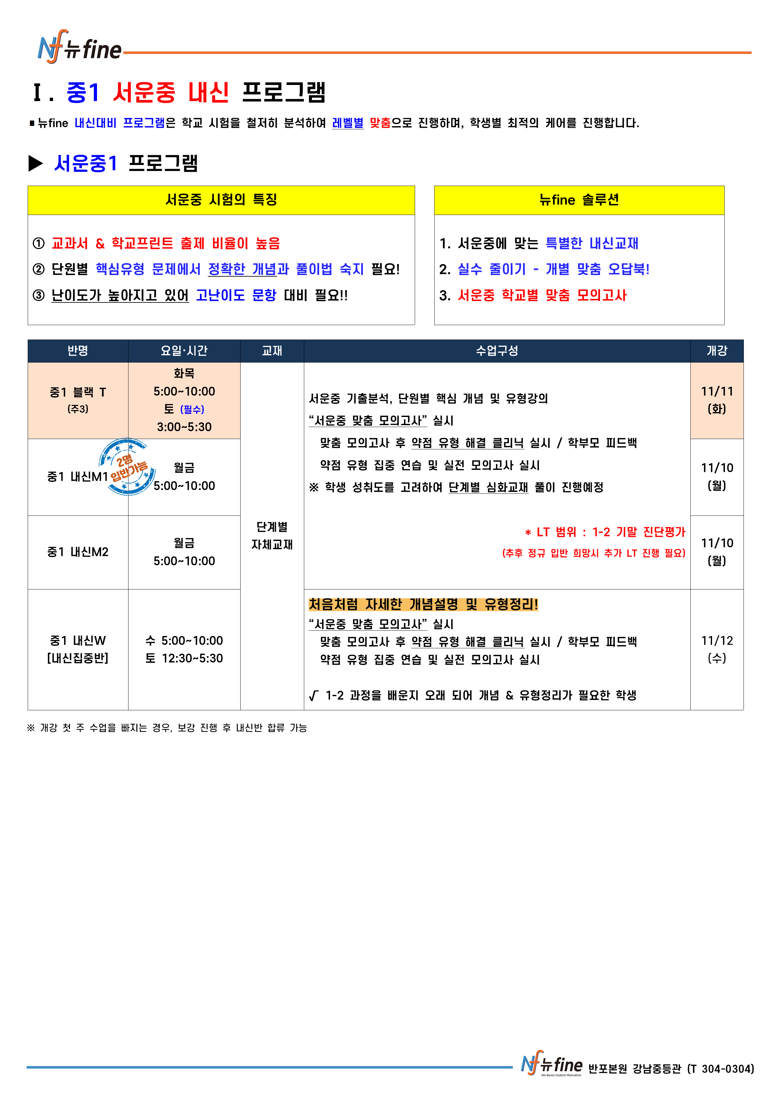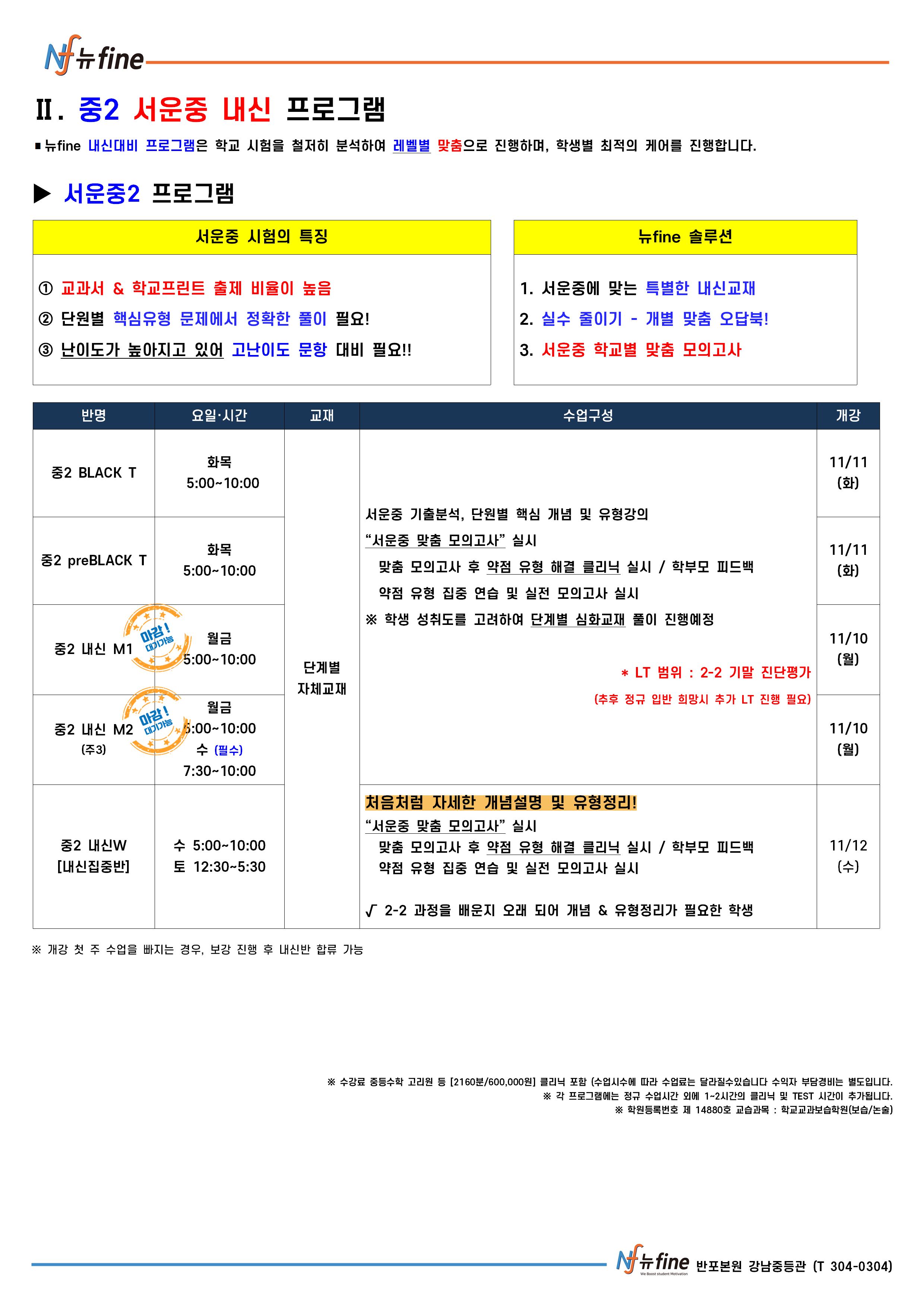2학기 기말 내신대비 수학 프로그램 (11/10(월) 개강)