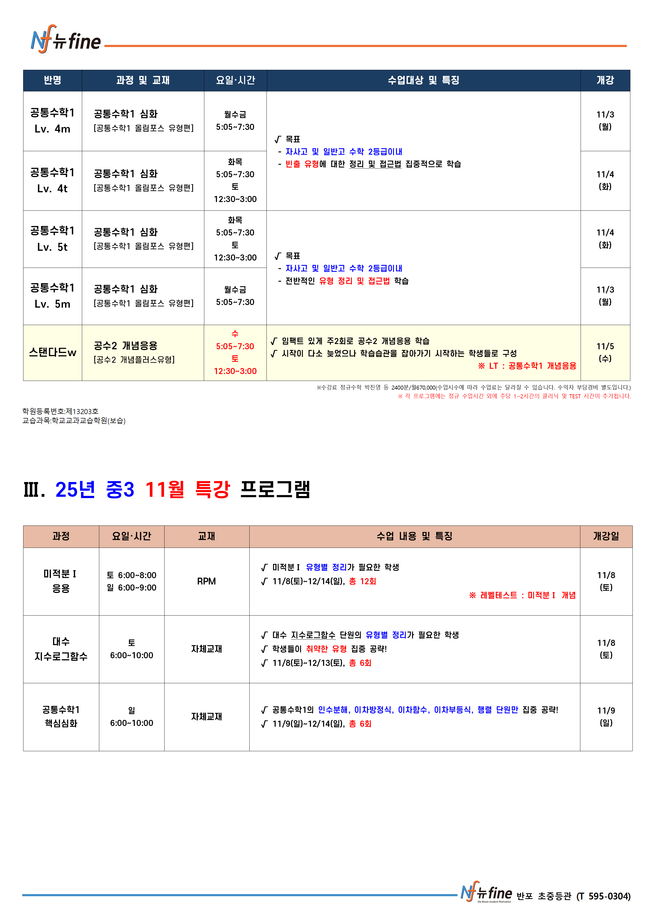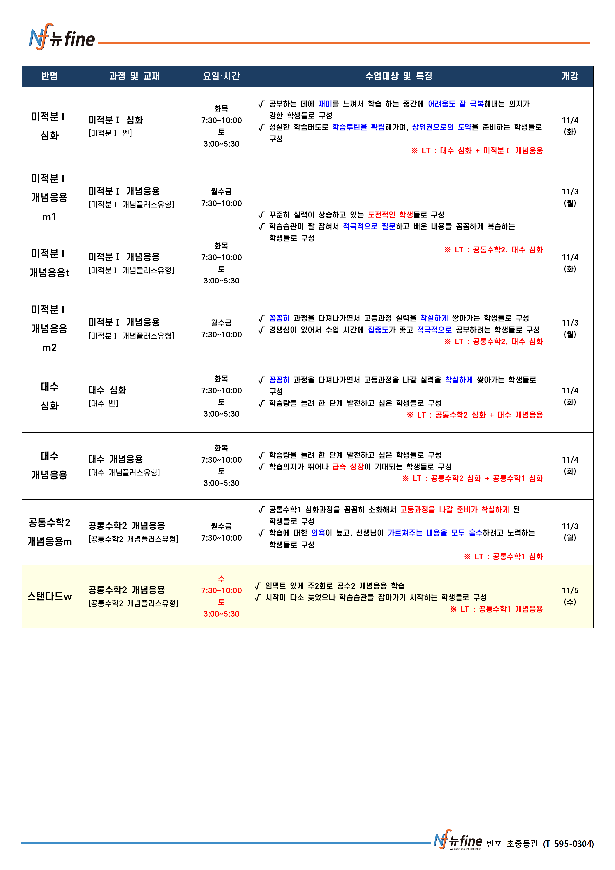11월 학기 수학 프로그램 (11/3(월) 개강)