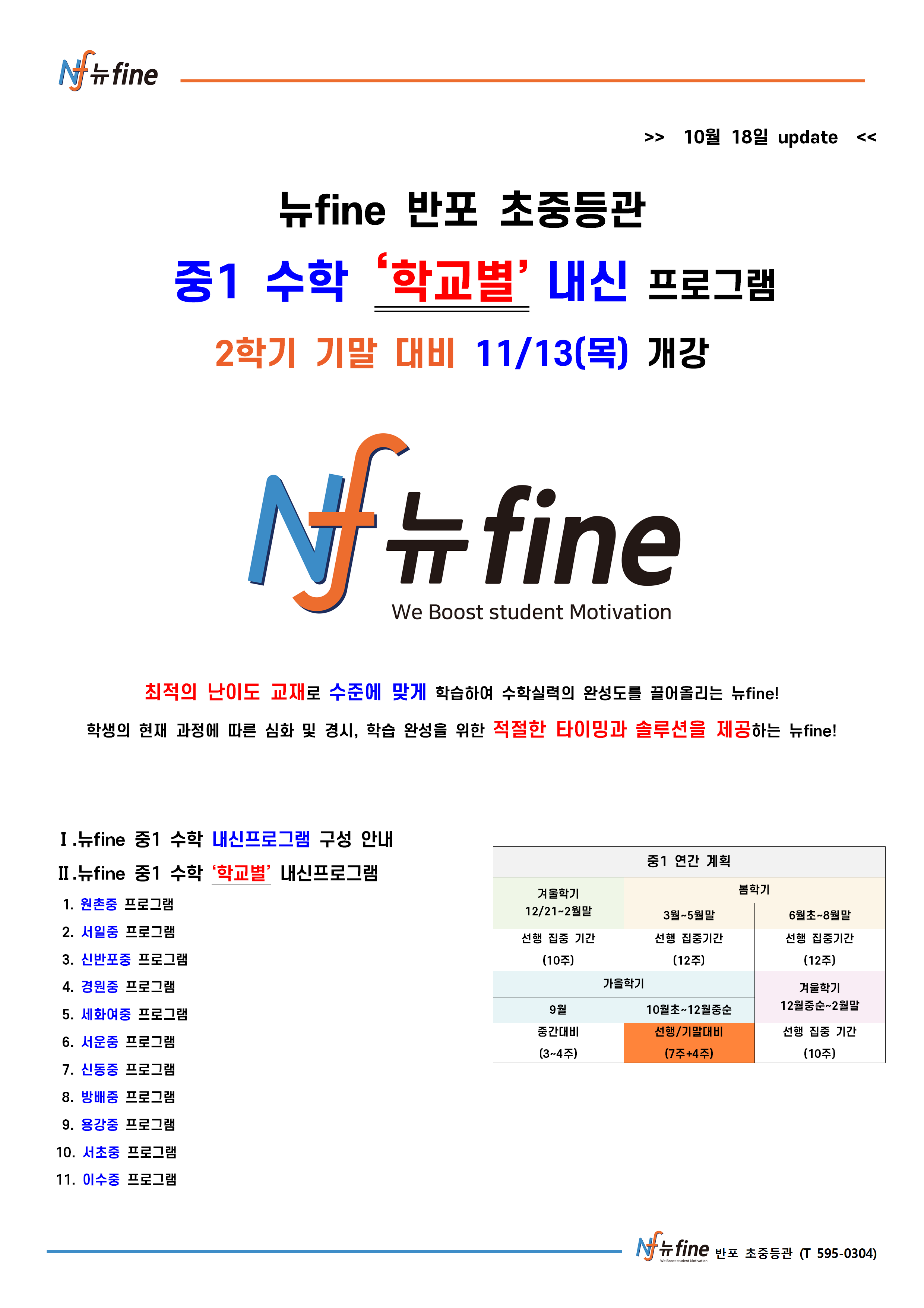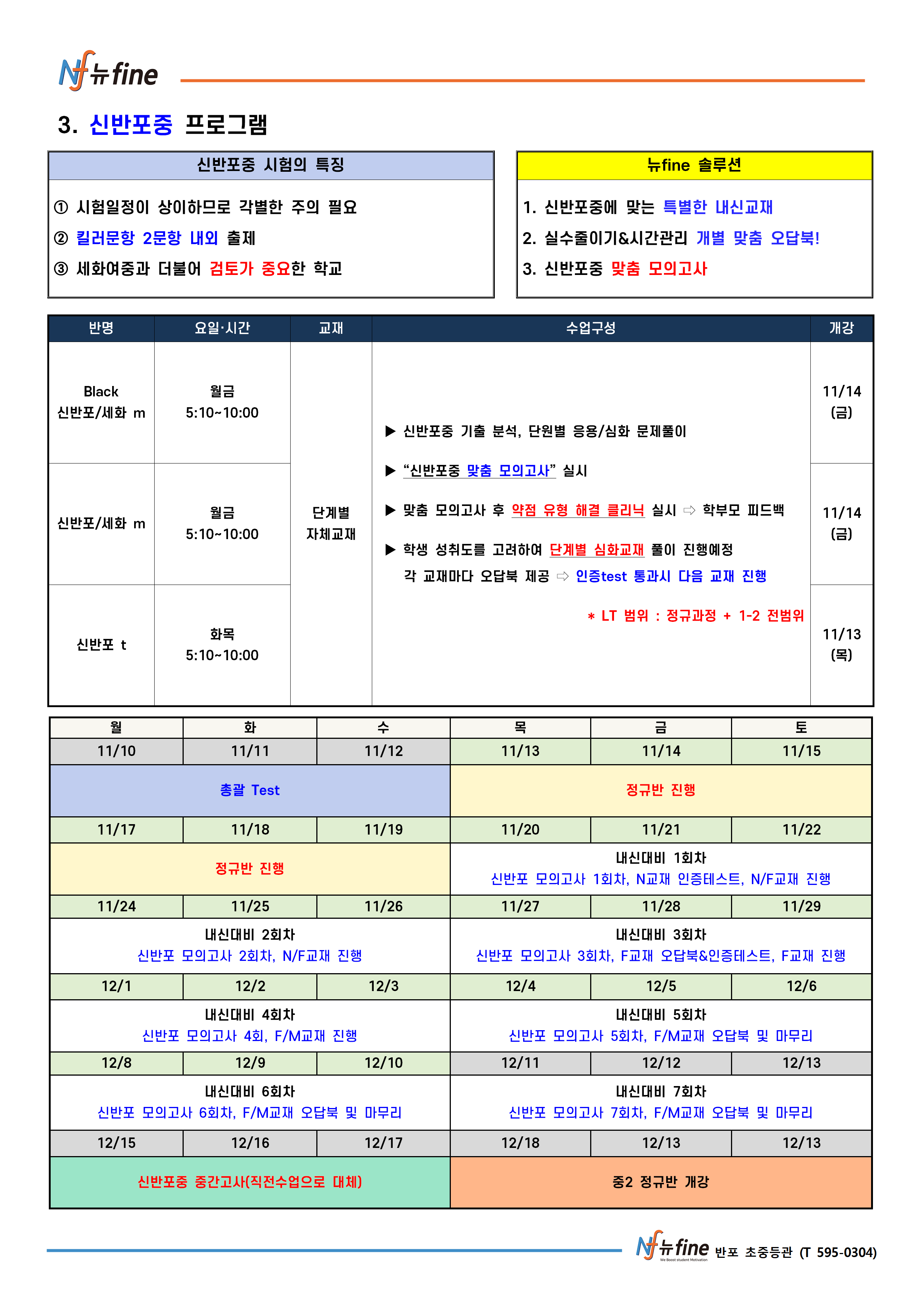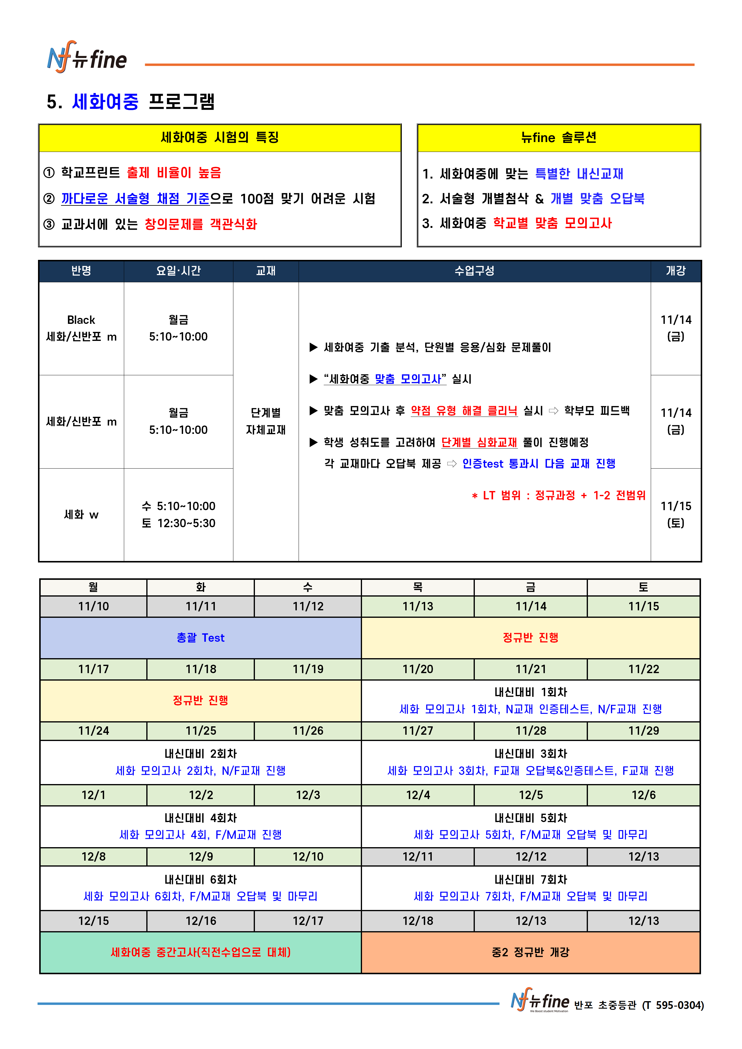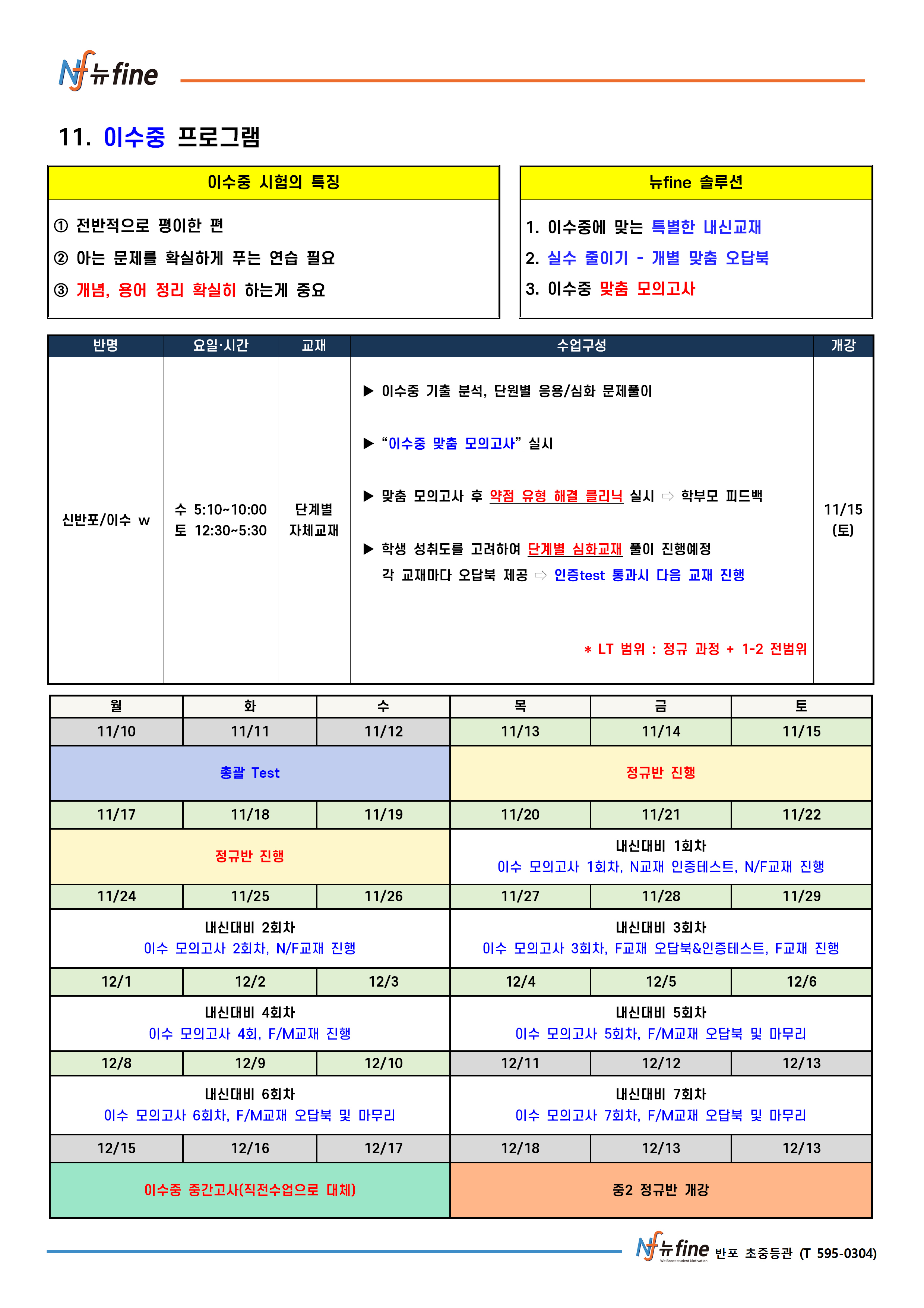 2학기 기말 내신대비 프로그램 (11/13(목) 개강)