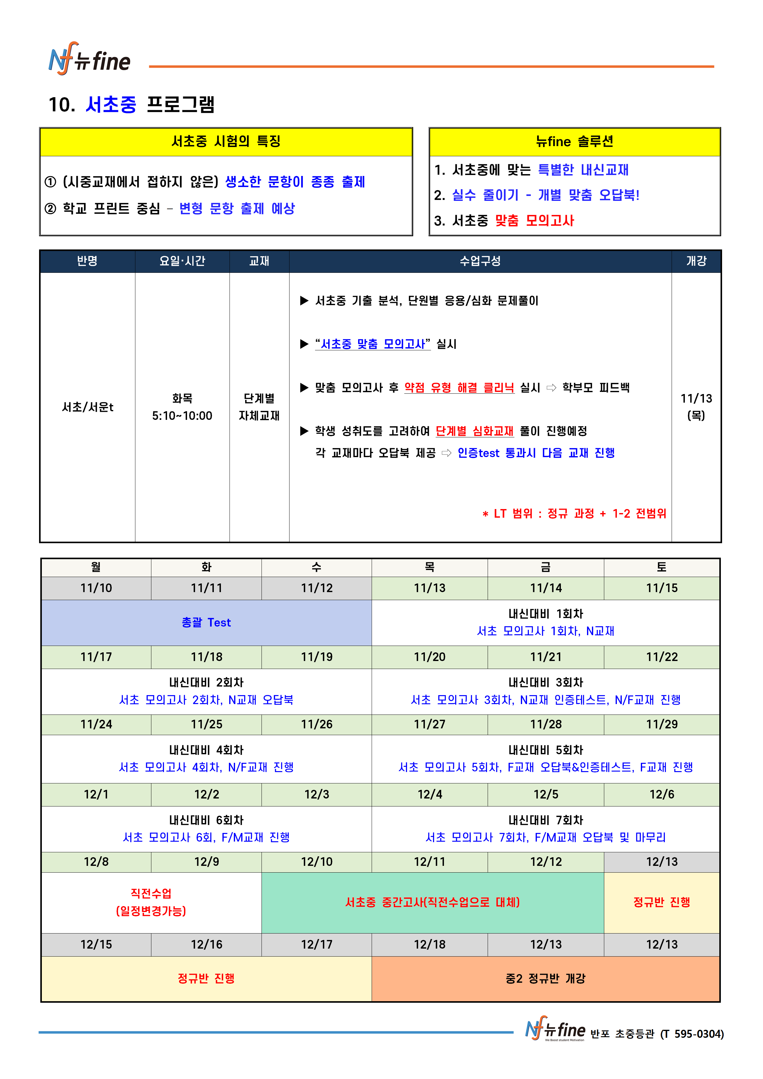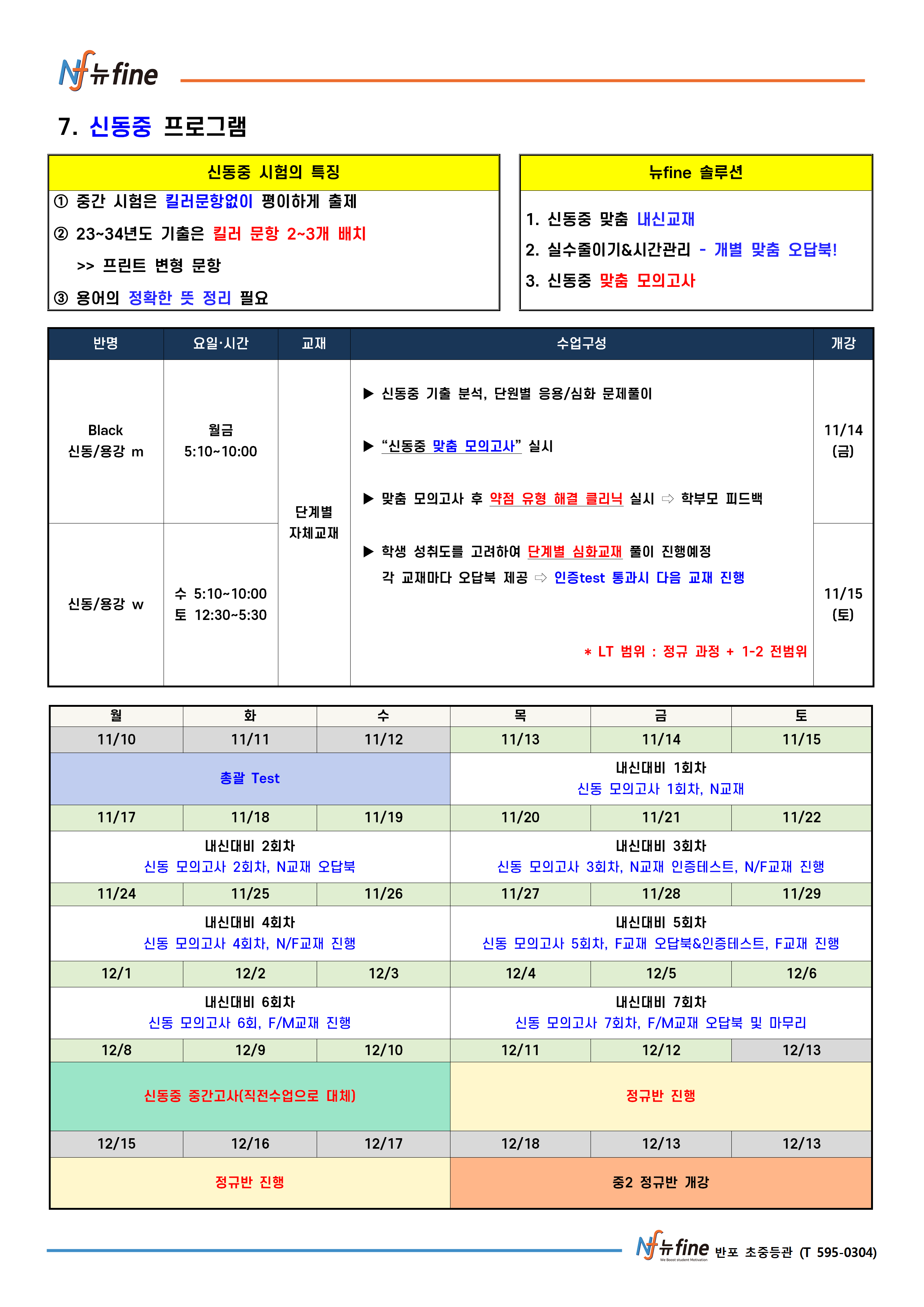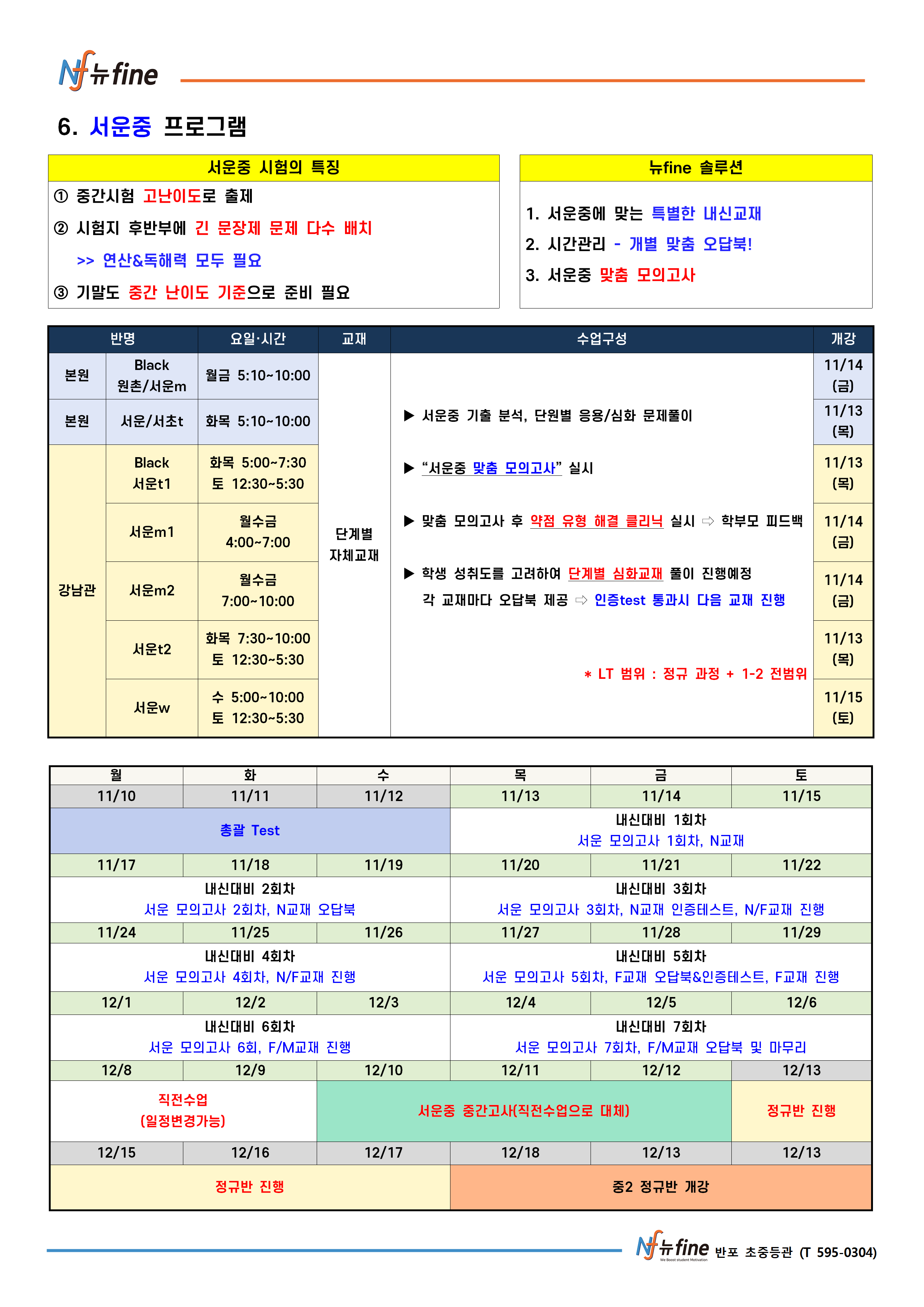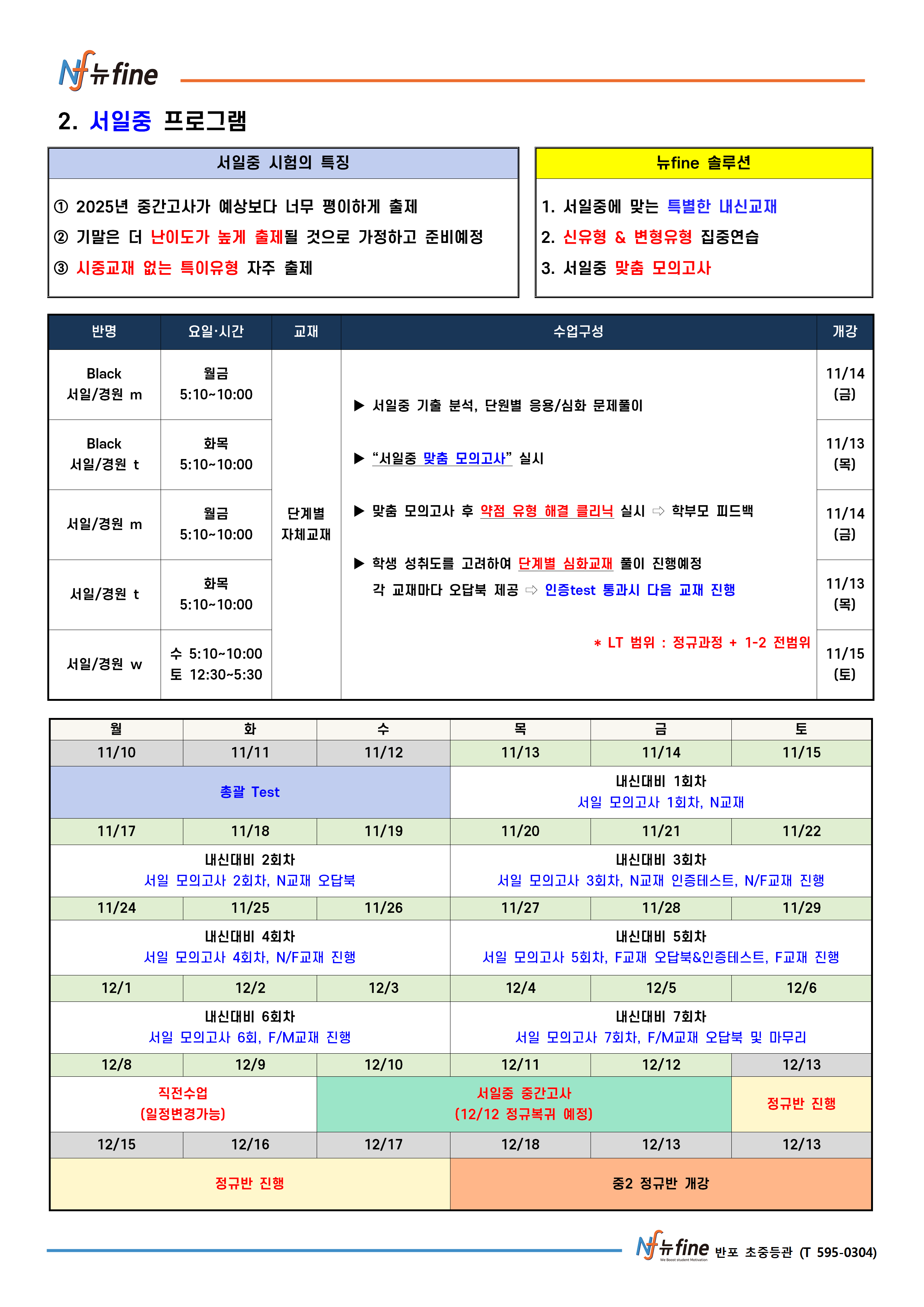 2학기 기말 내신대비 프로그램 (11/13(목) 개강)