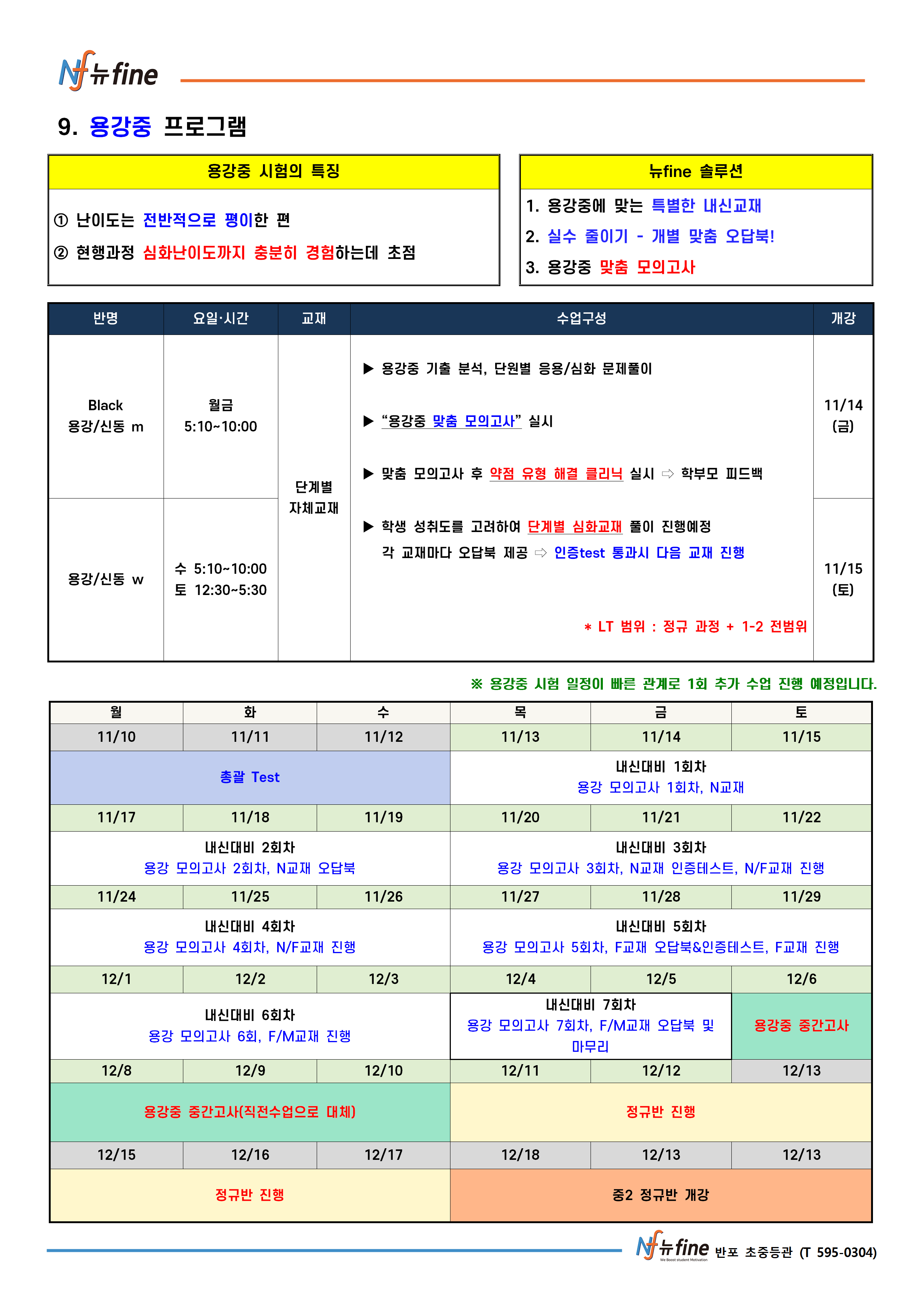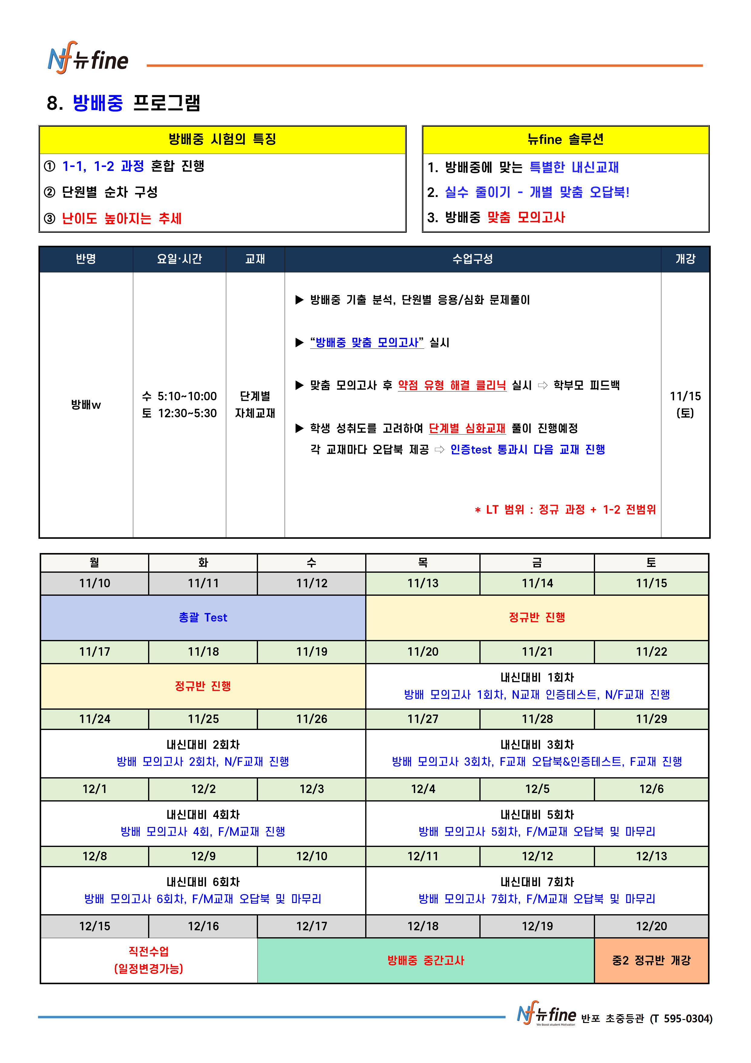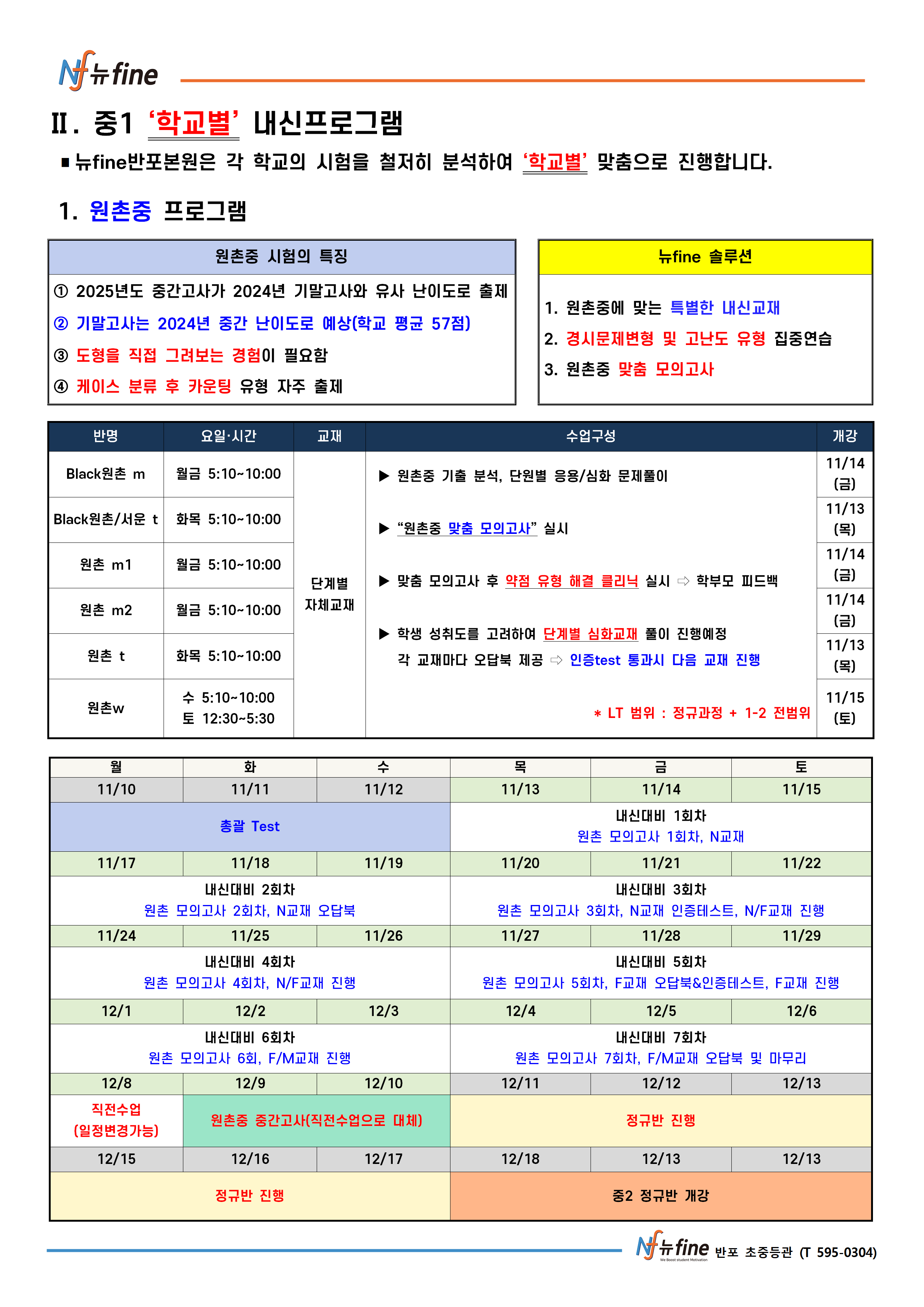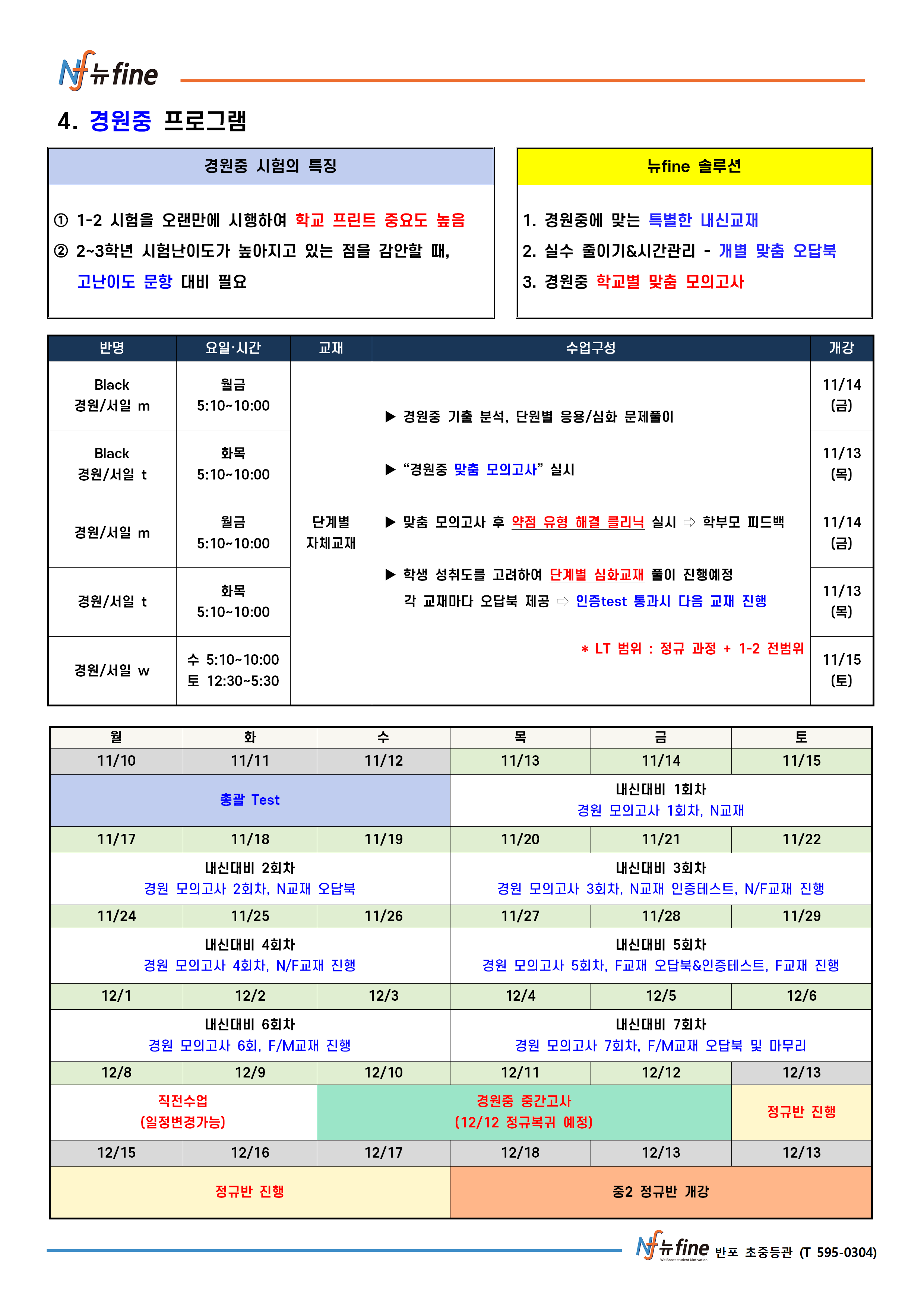 2학기 기말 내신대비 프로그램 (11/13(목) 개강)