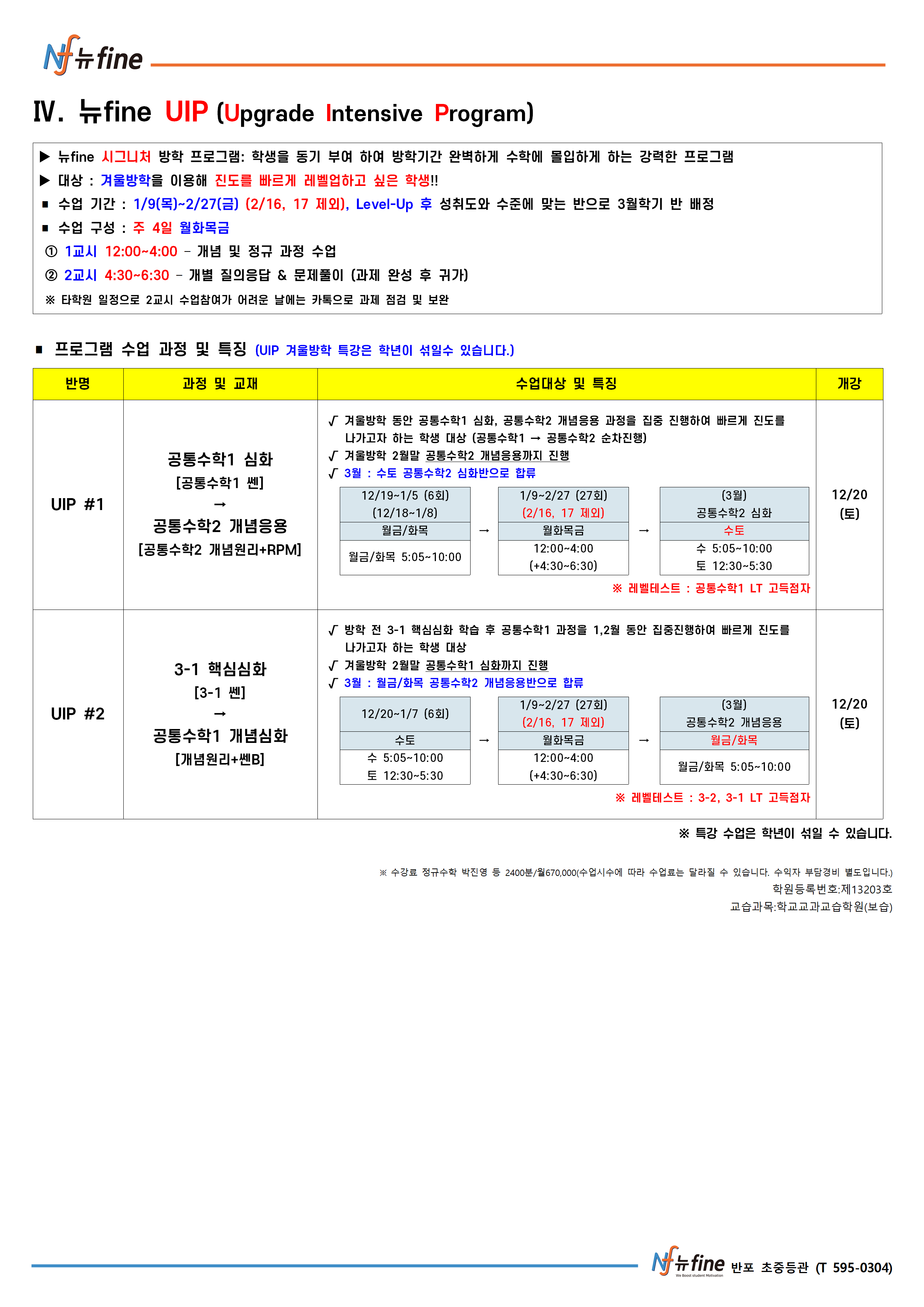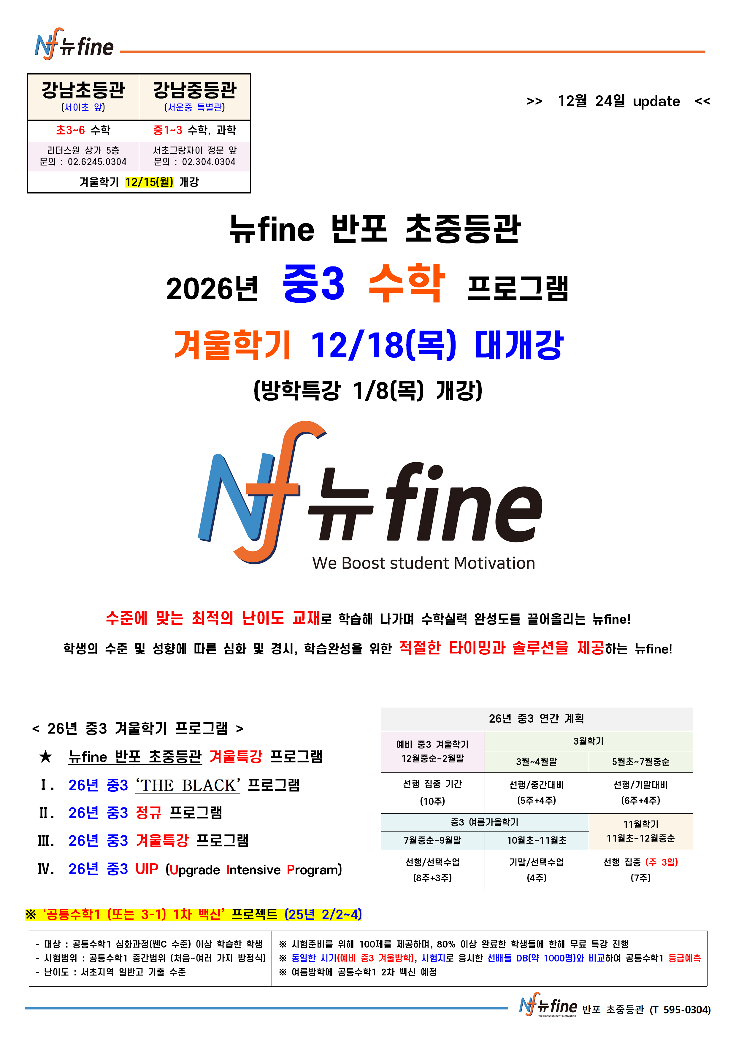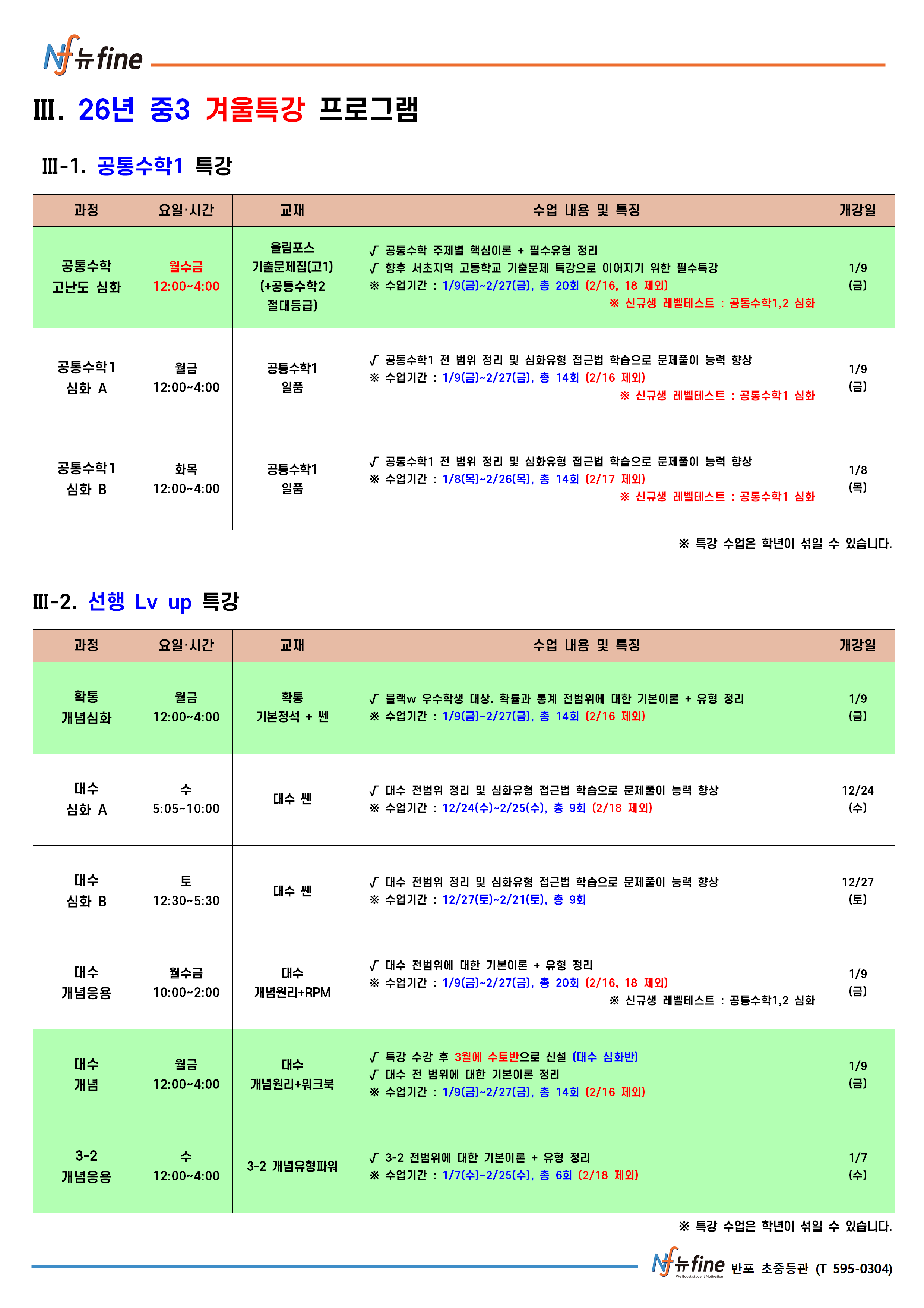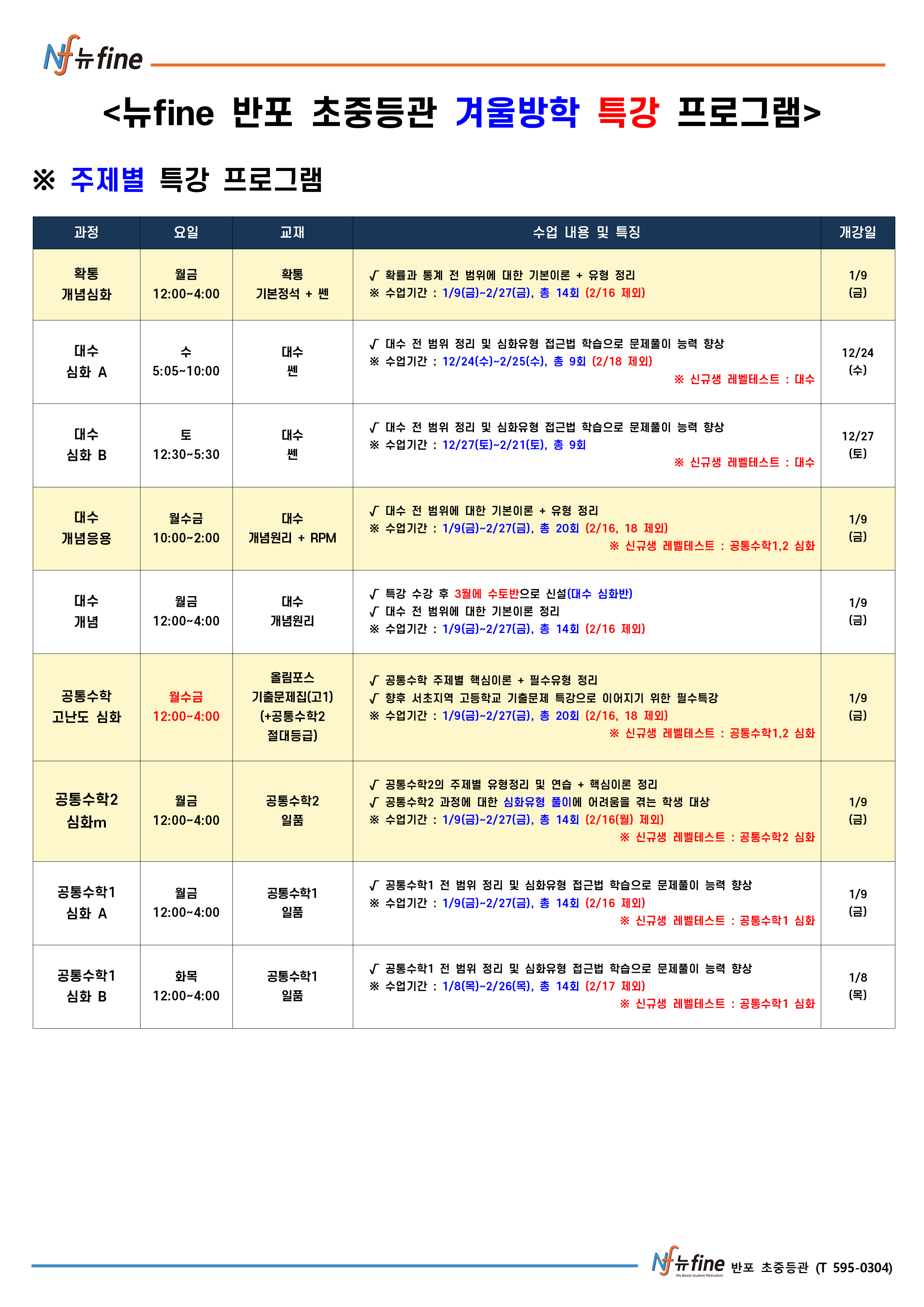 12월 겨울학기 수학 프로그램 (12/18(목) 순차개강)