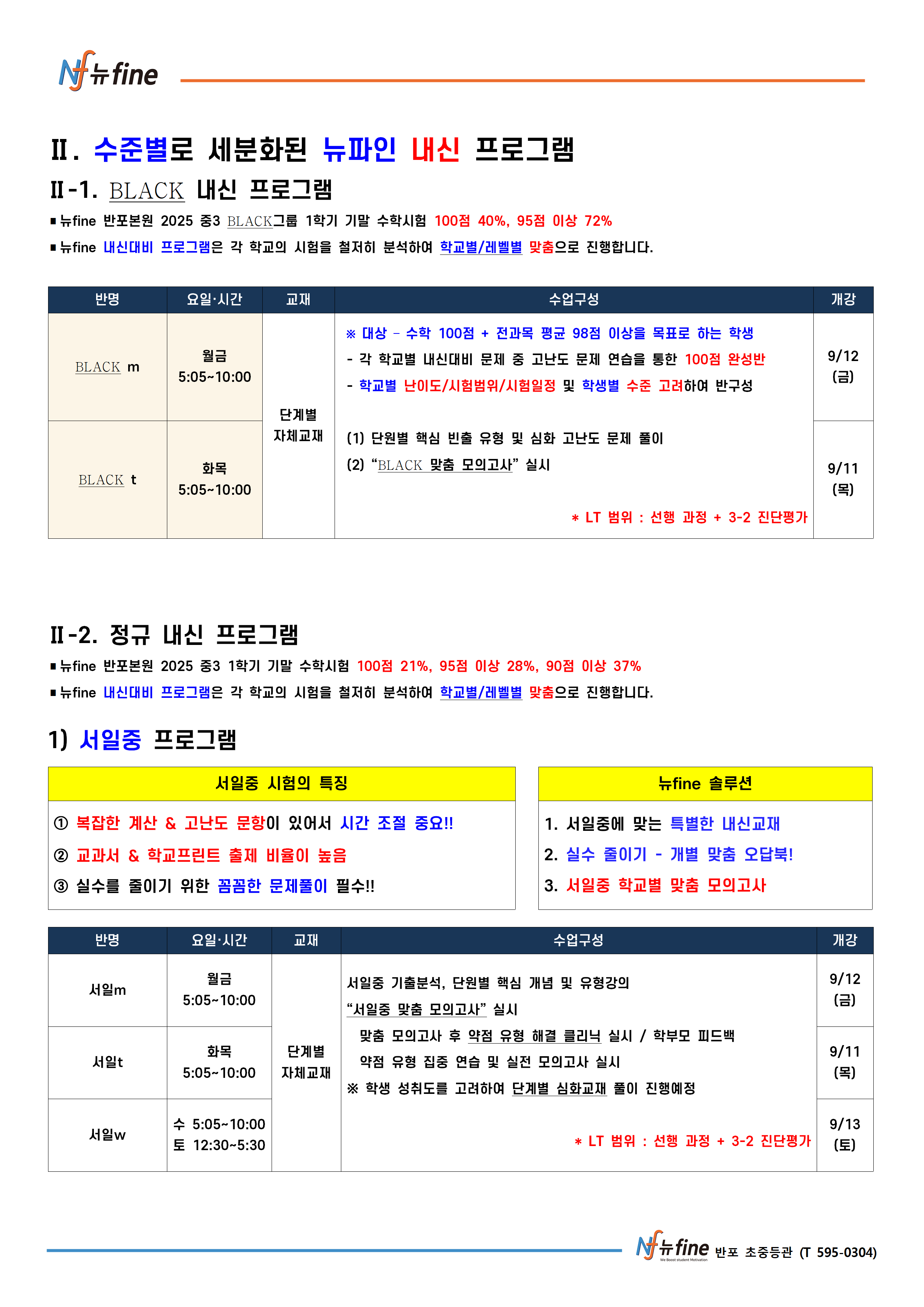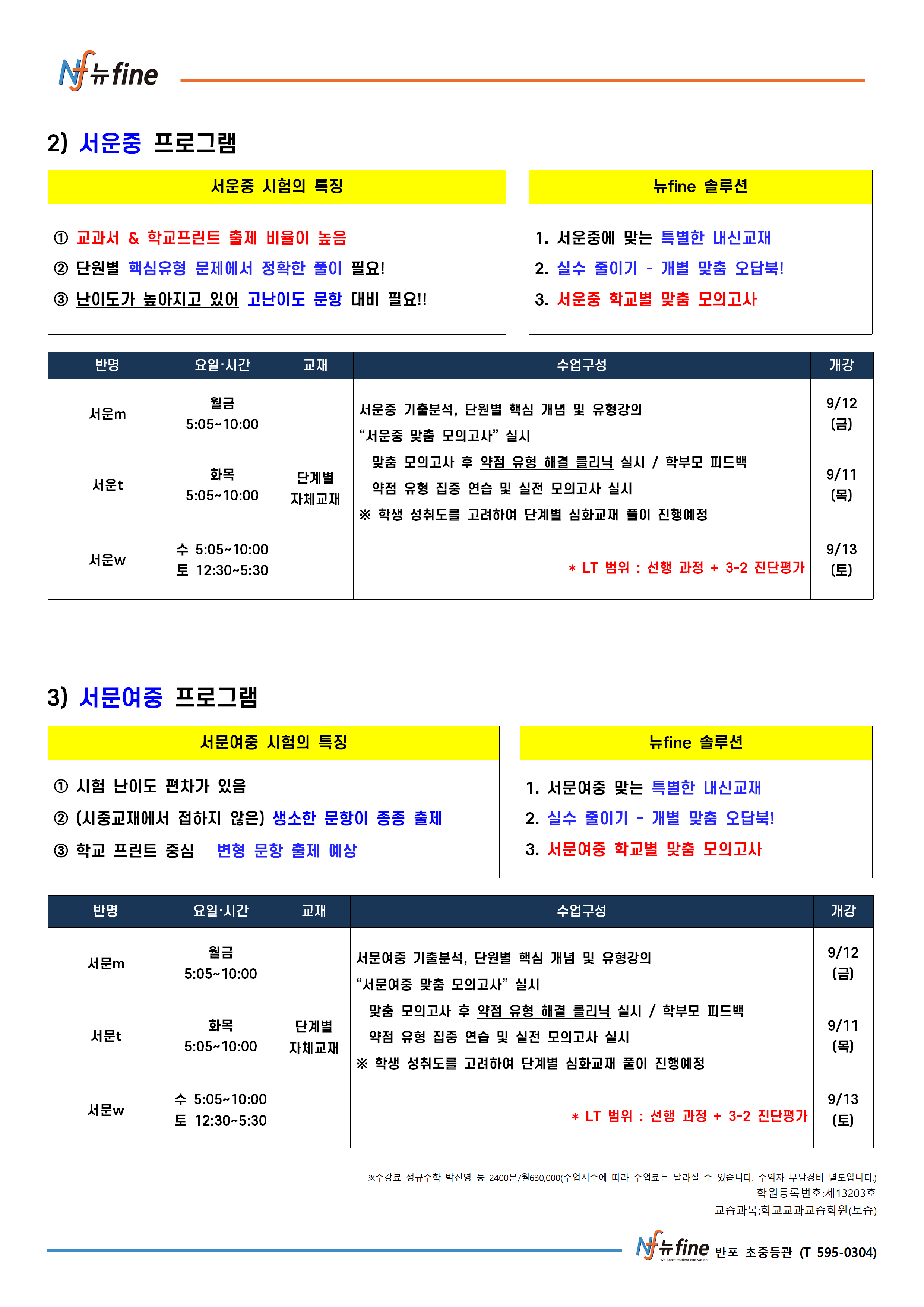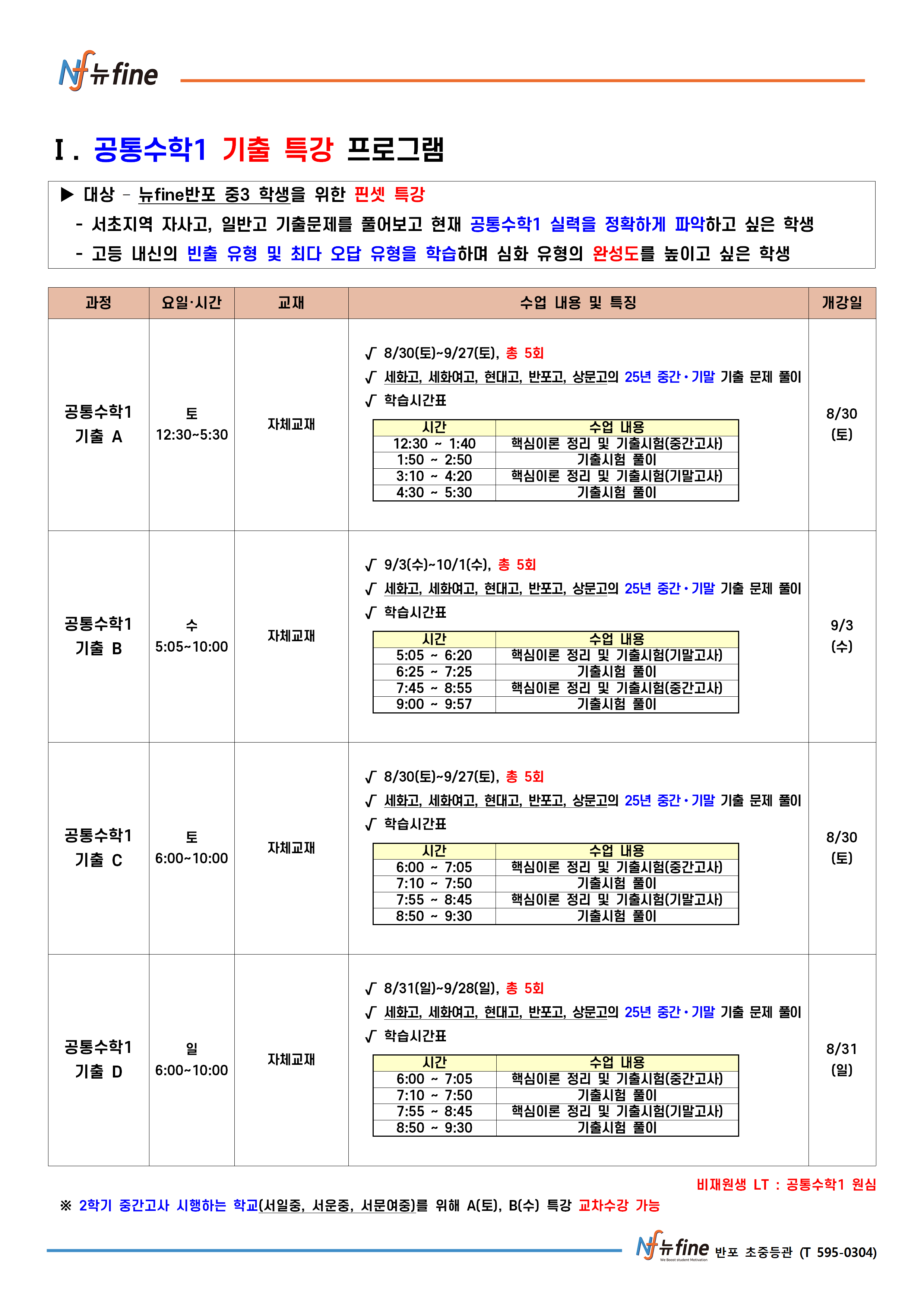 9월 학기 특강/내신 수학 프로그램