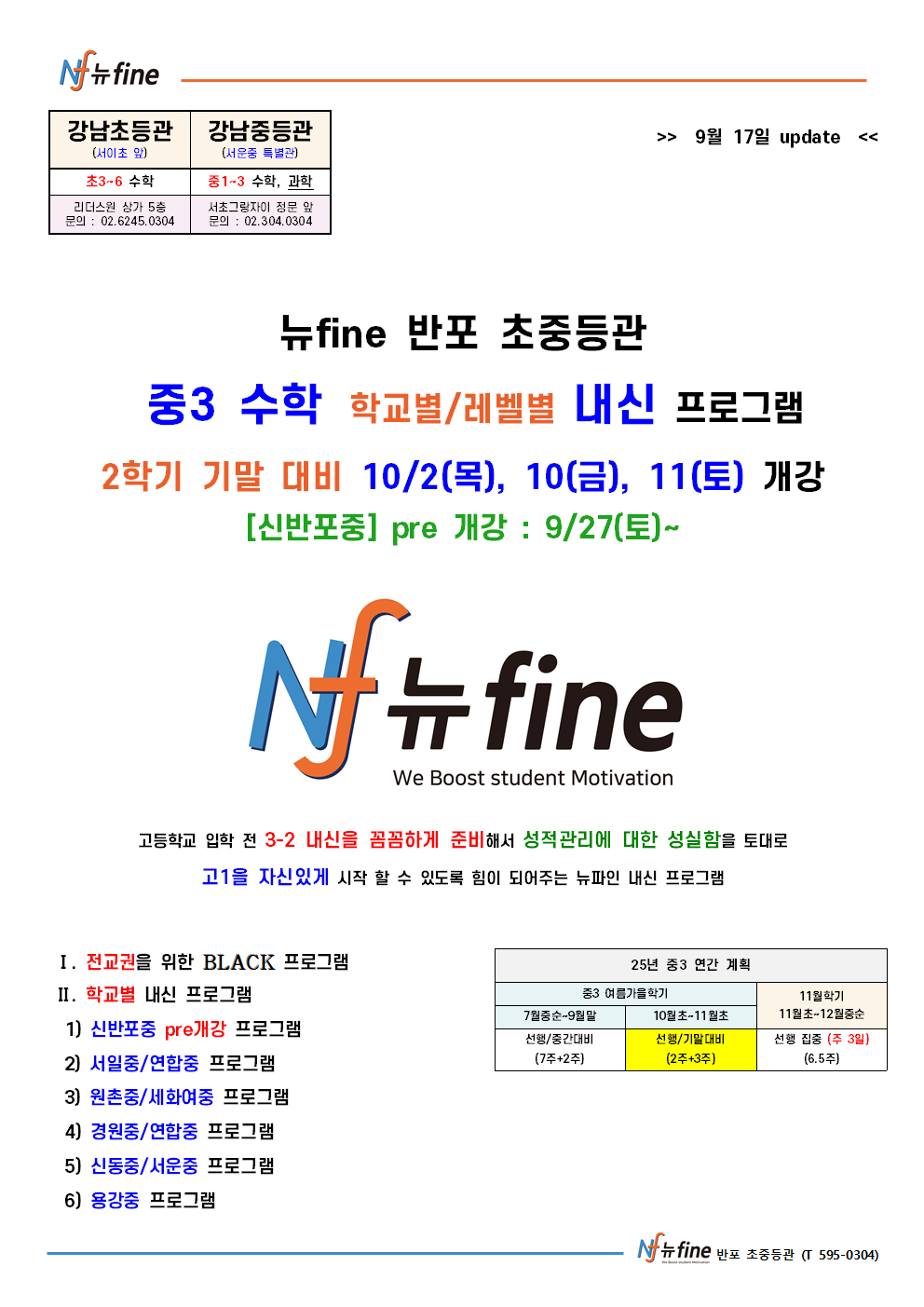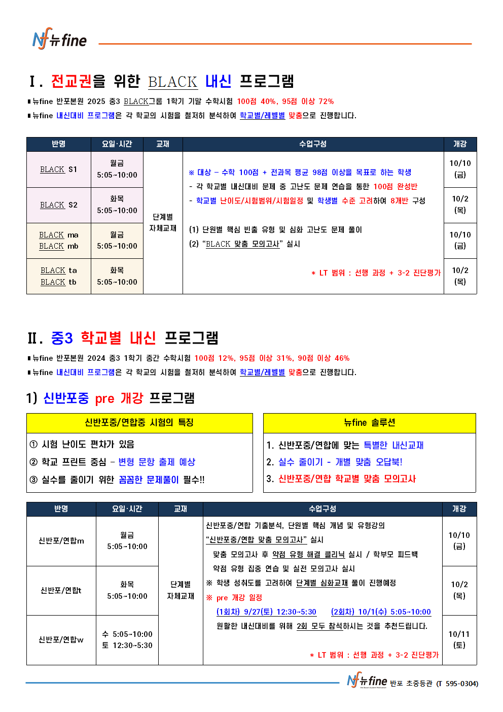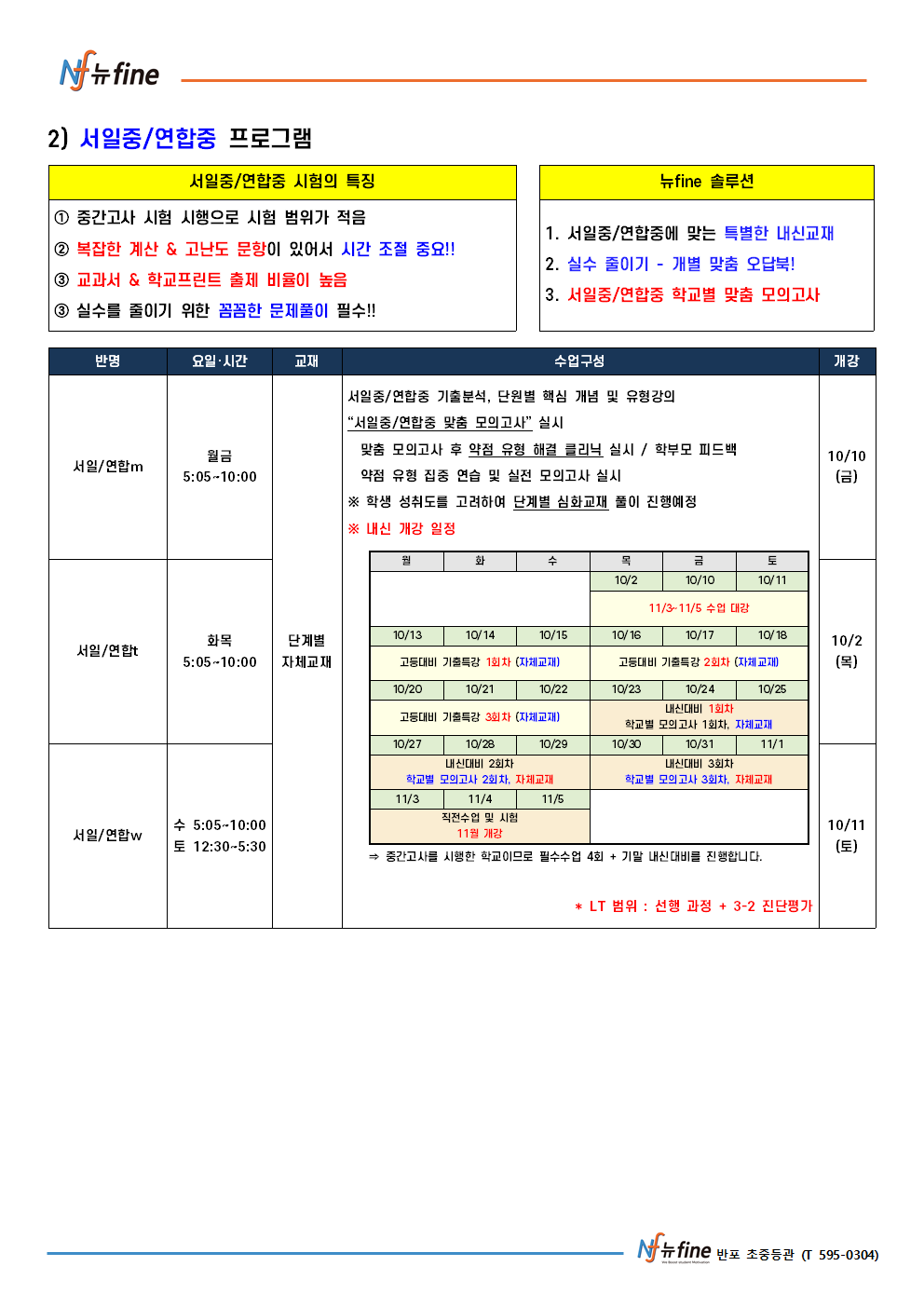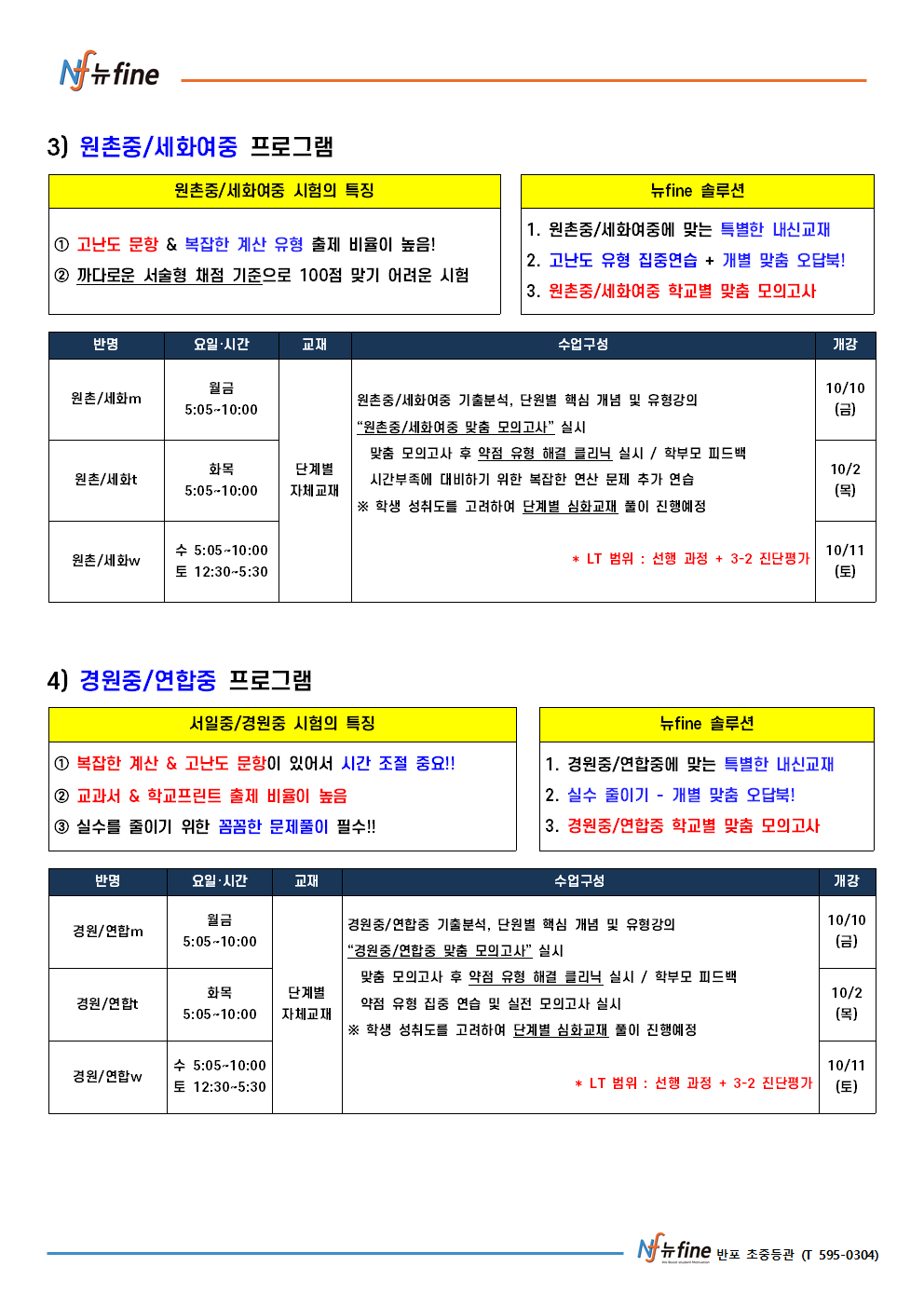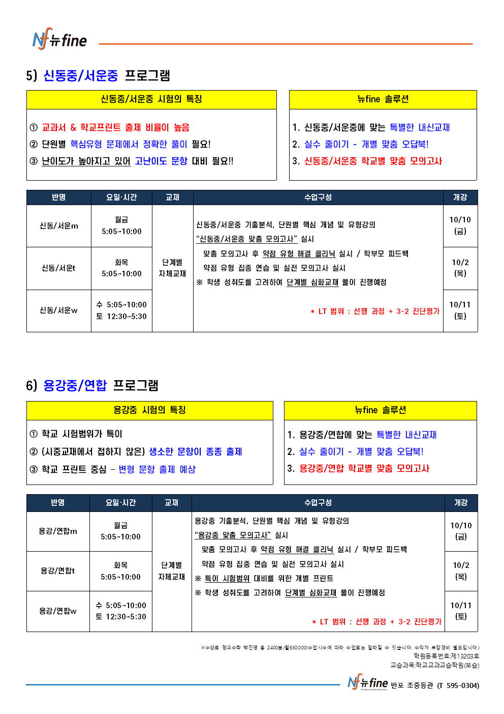2학기 기말 내신대비 수학 프로그램 (10/2(목) 개강)
