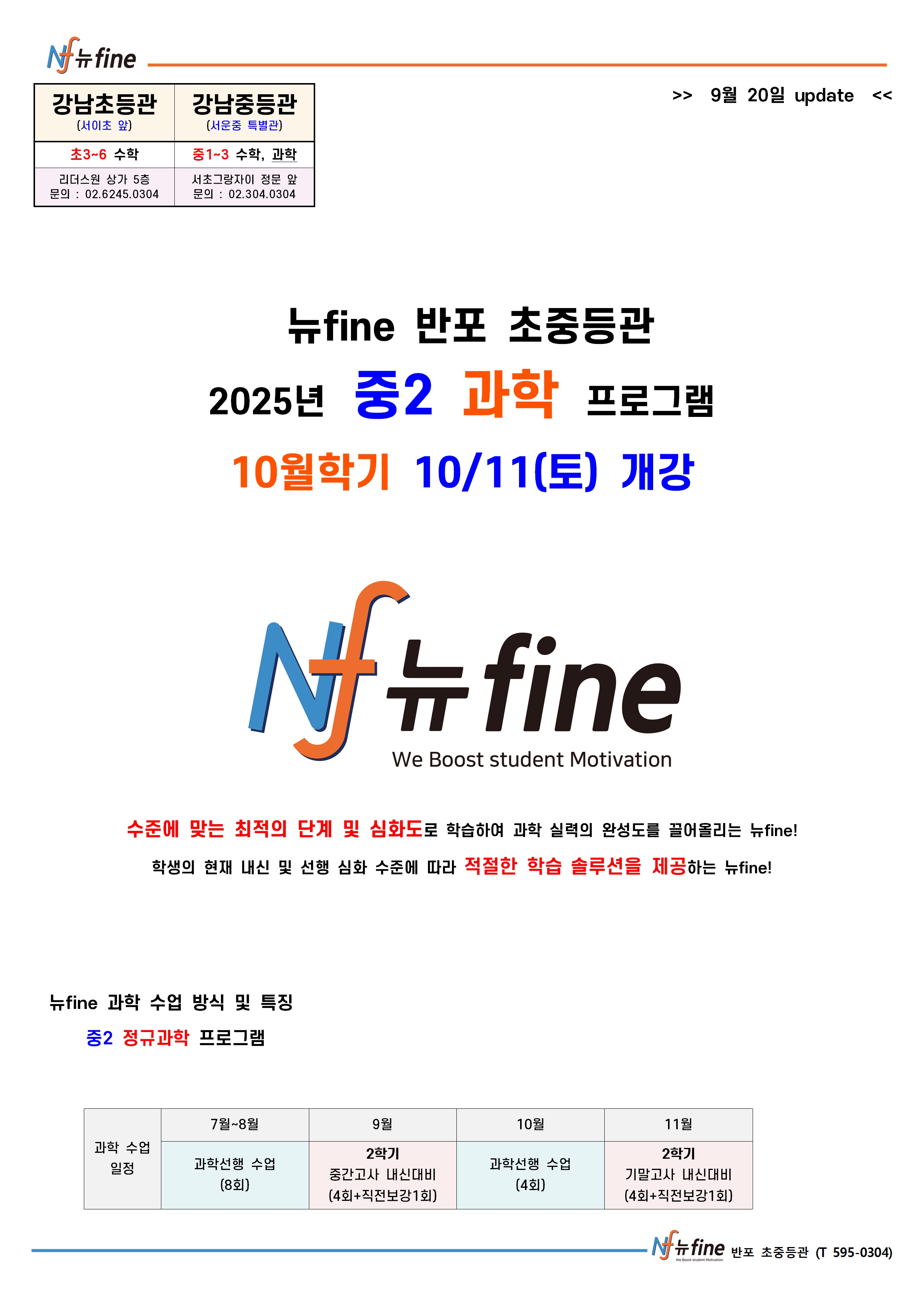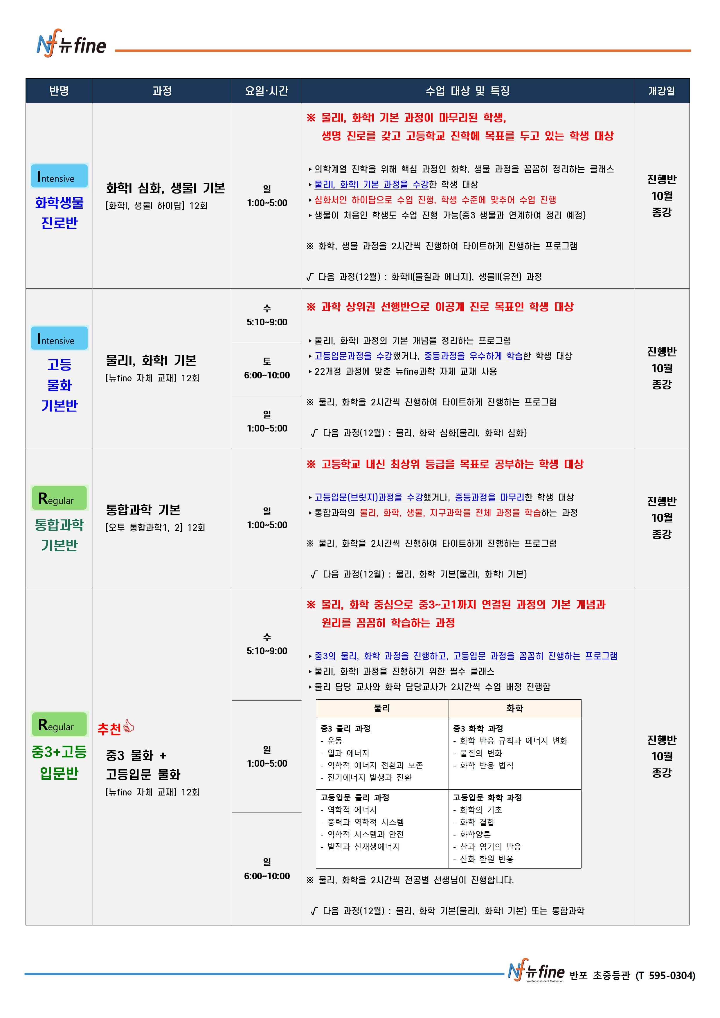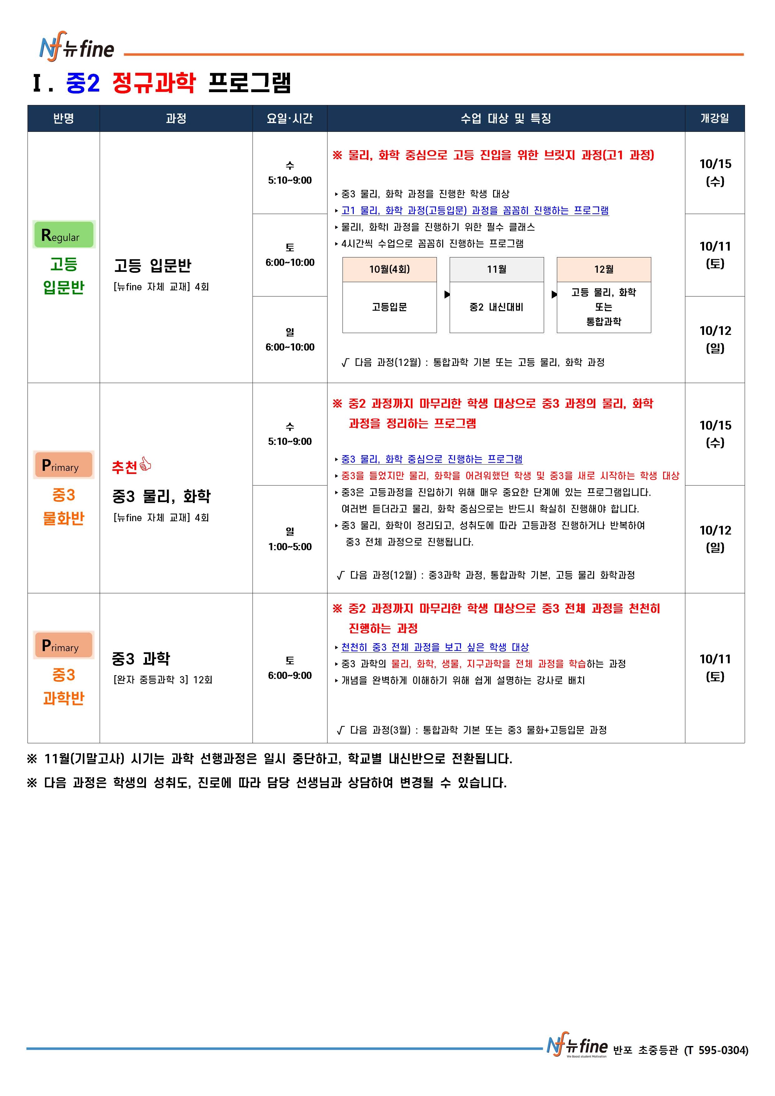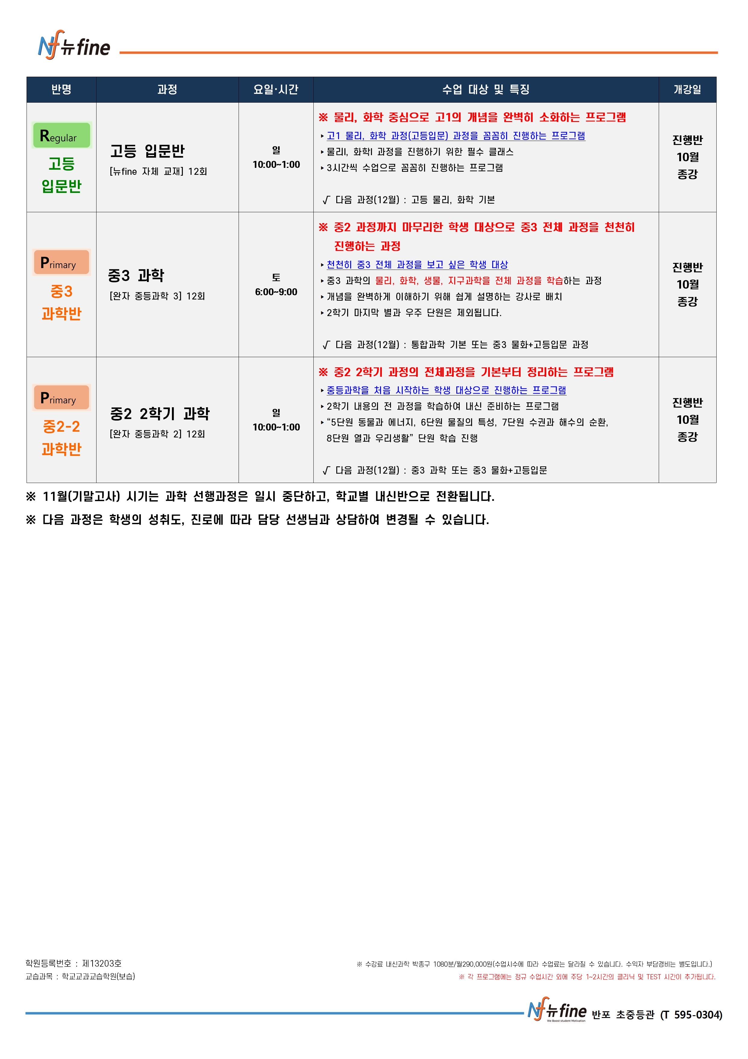 10월 학기 과학 프로그램 (10/11(토) 개강)