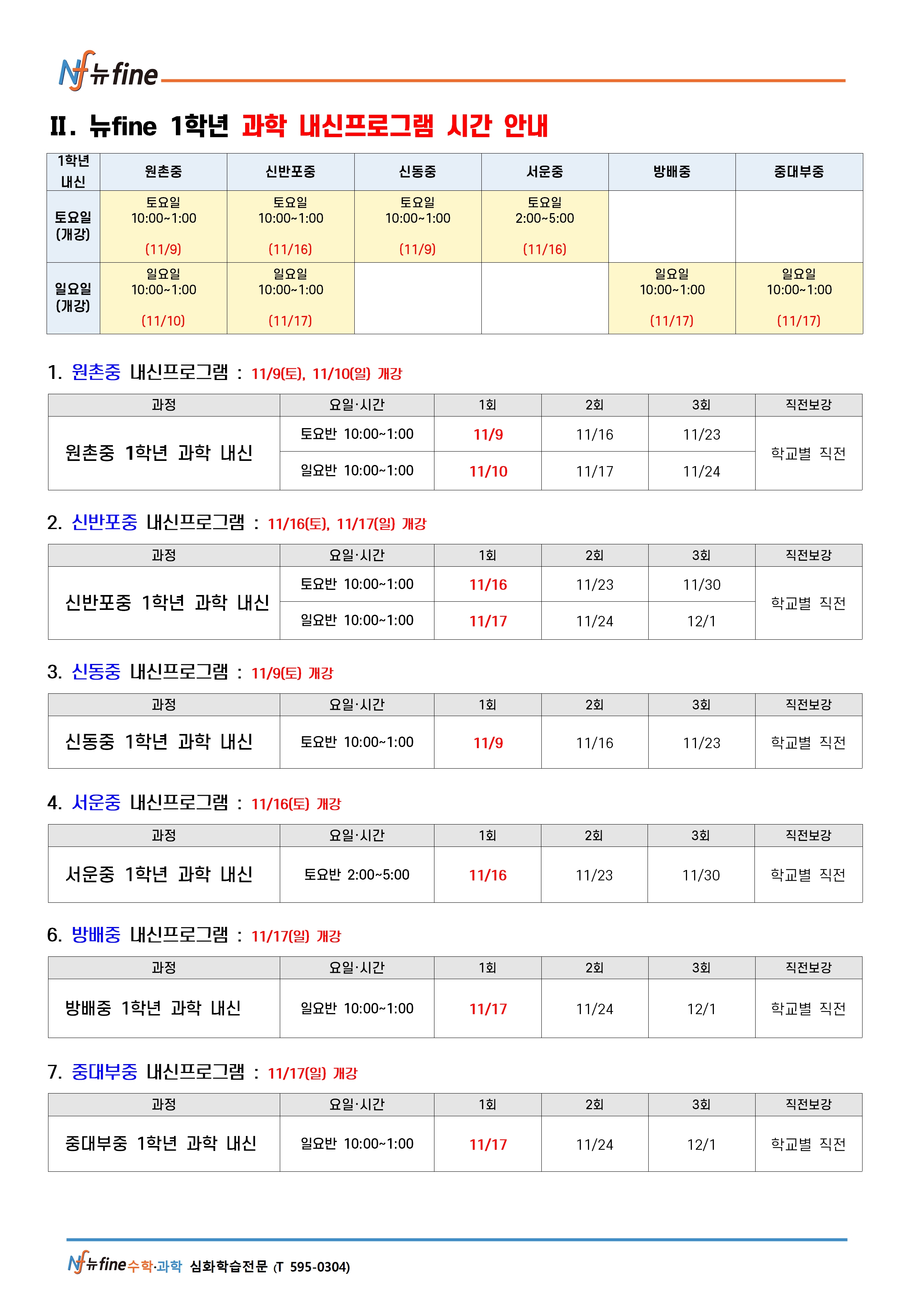 11월 내신대비 프로그램 (11/9(토) 개강)