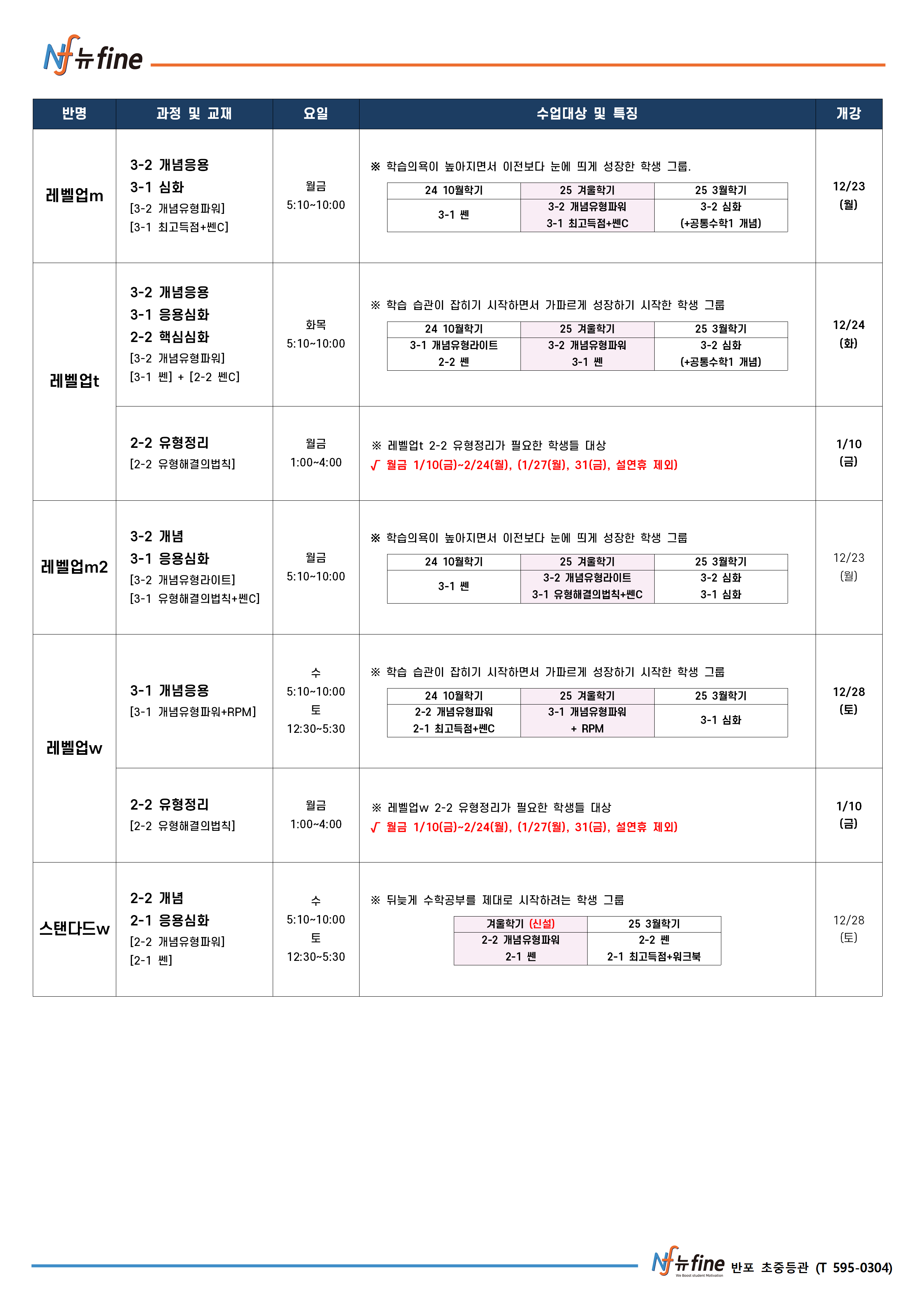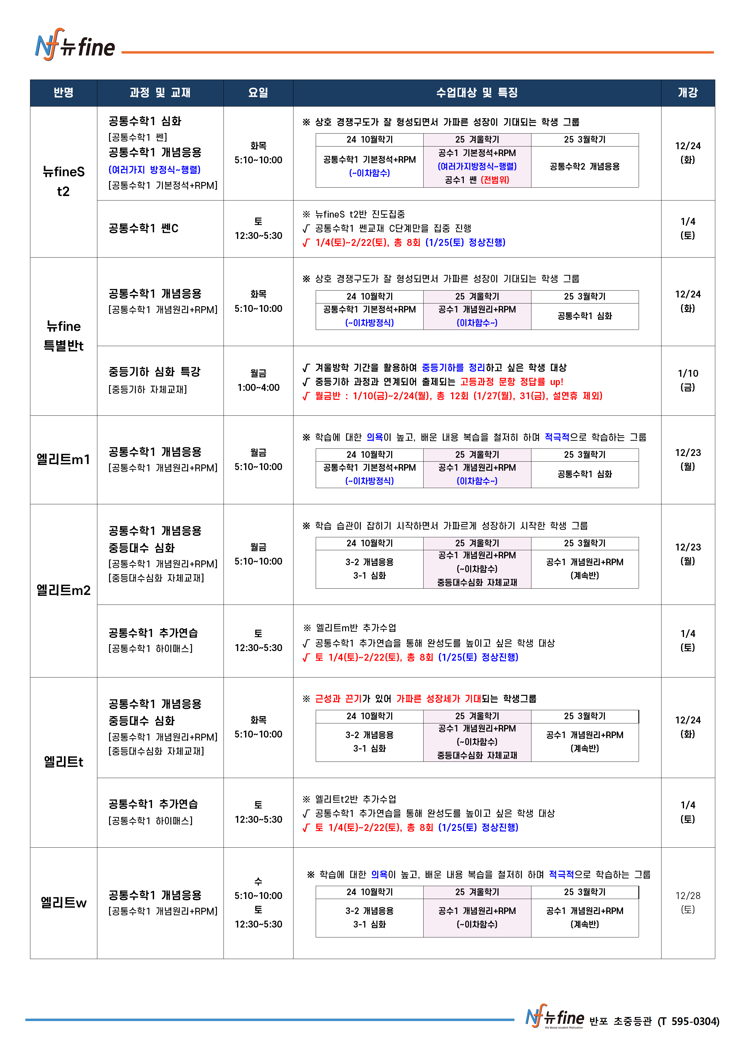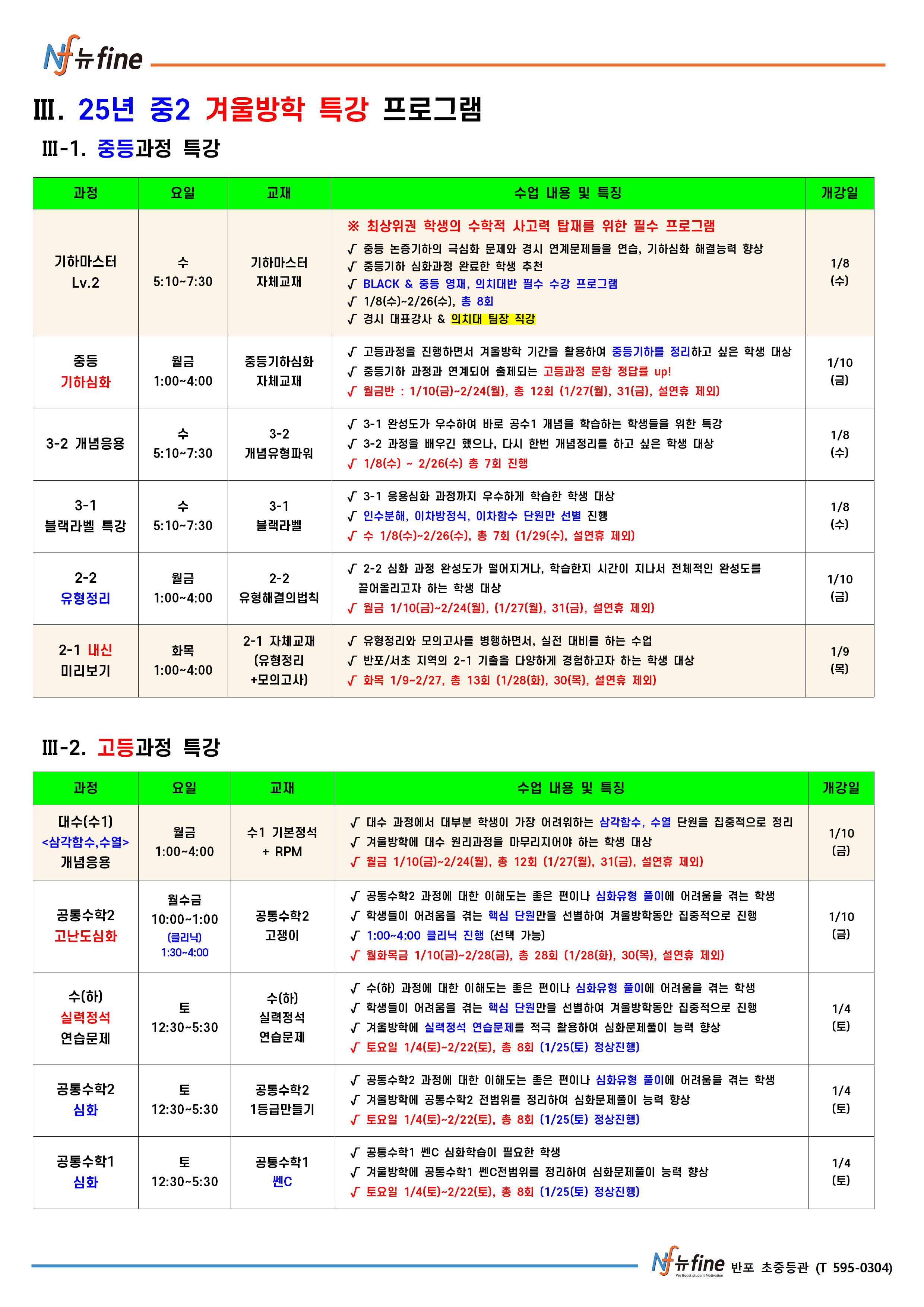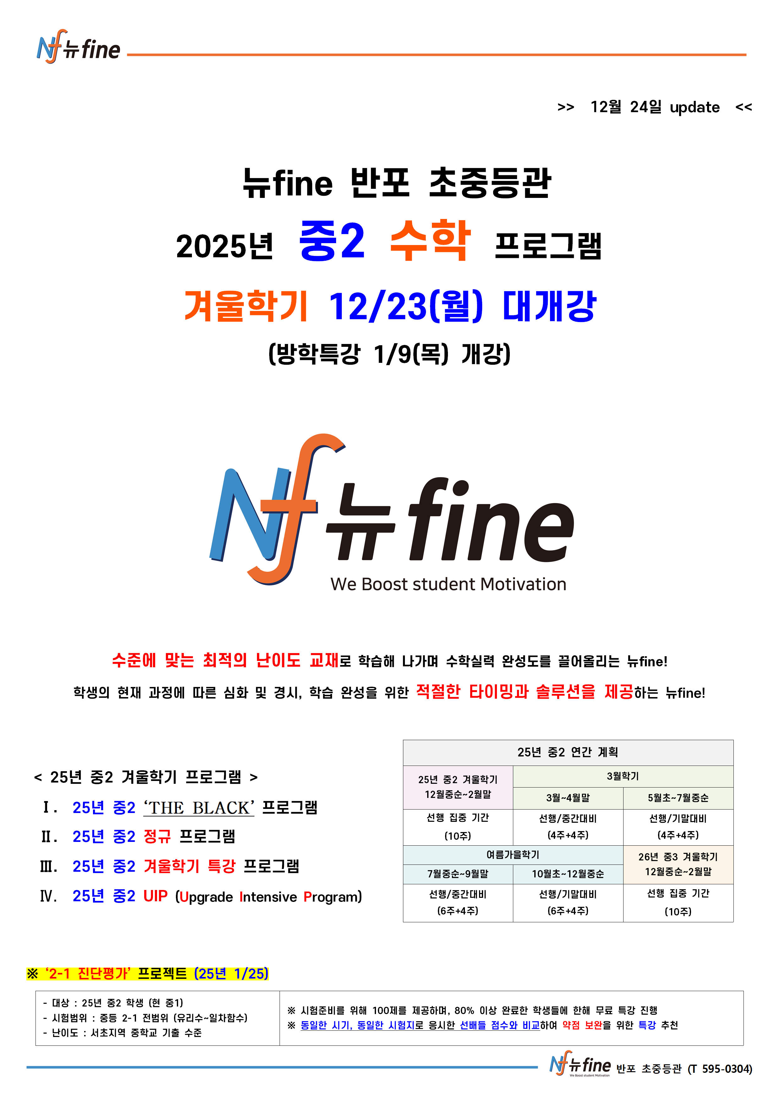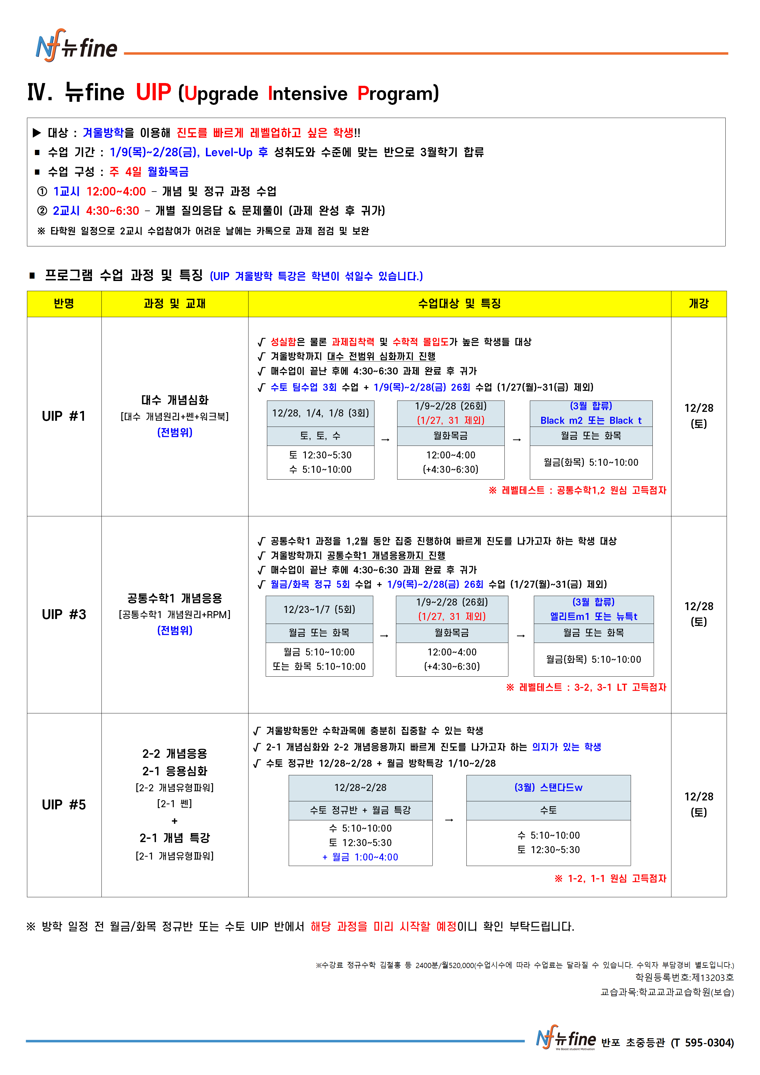 겨울학기 수학 프로그램 (12/23(월) 개강)