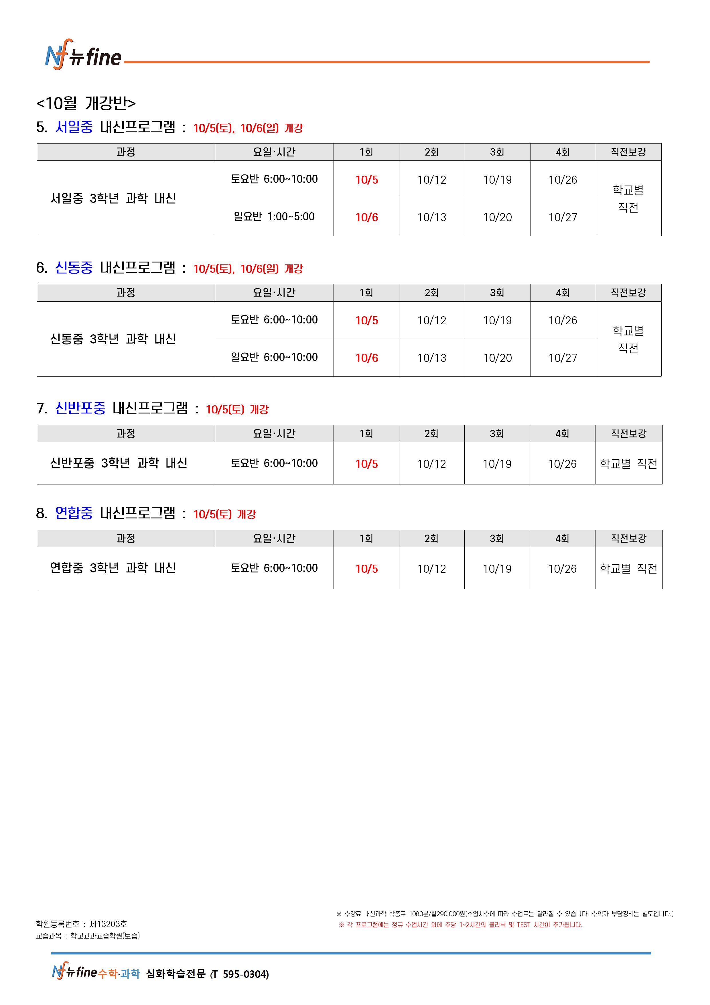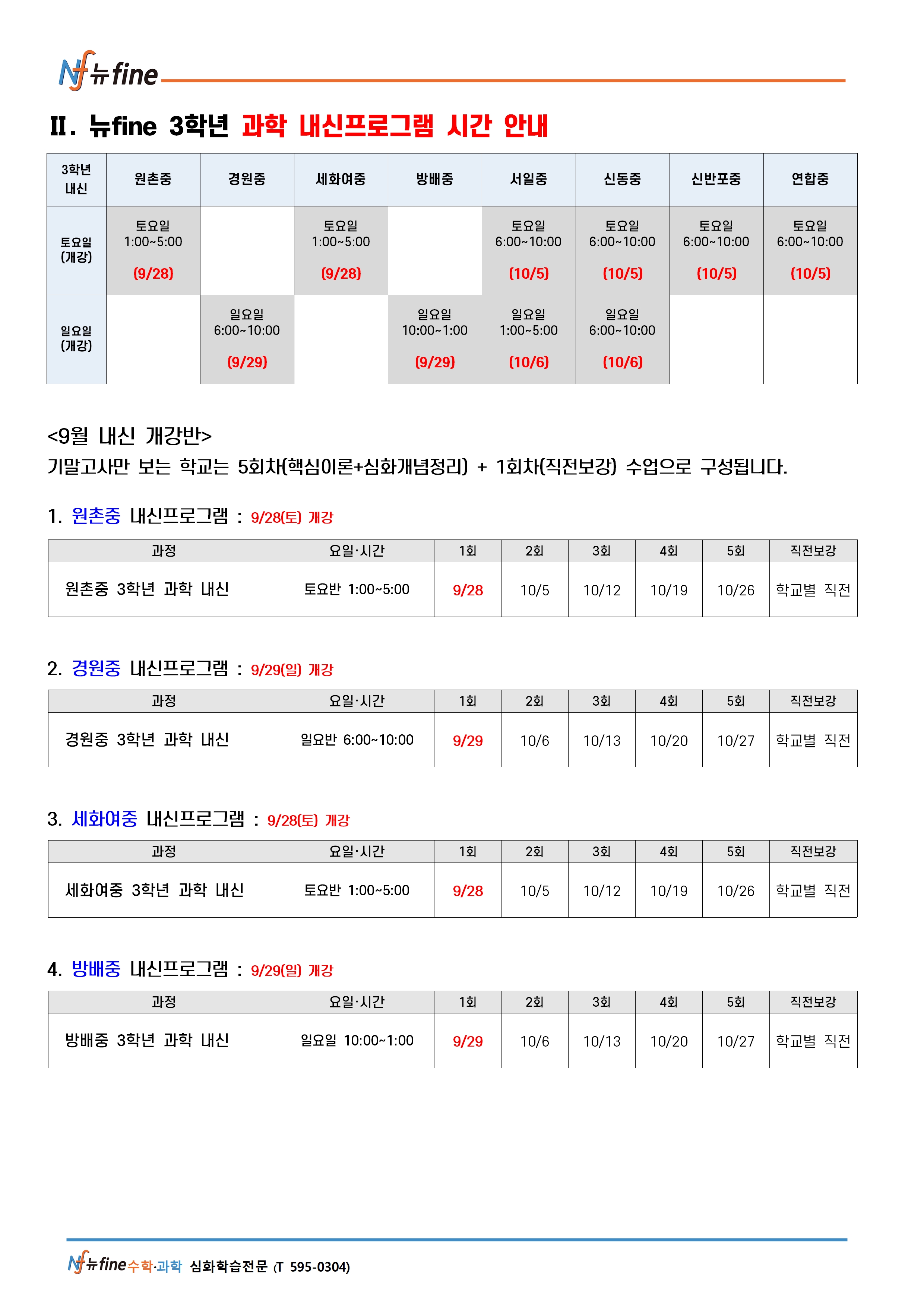 기말 내신 프로그램 (9/28(토) 개강)