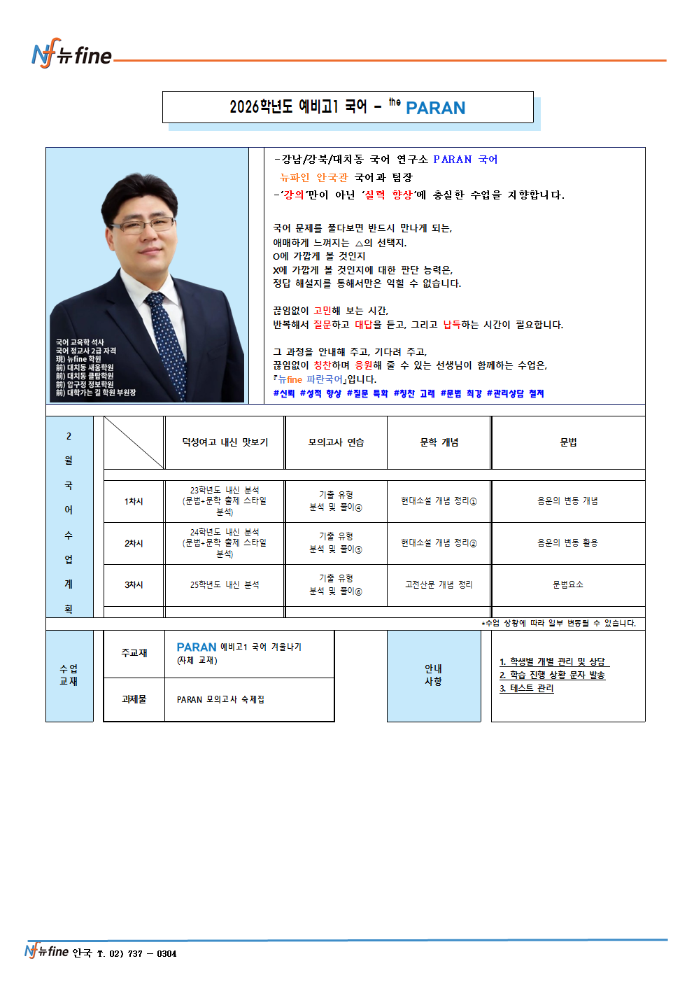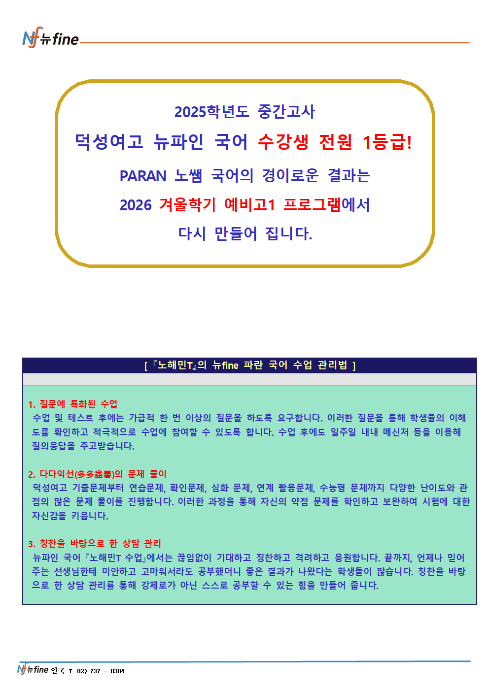 뉴파인학원(이하 ‘학원’)은 개인정보 보호법에 명기된 관련 법률 상의 개인정보처리자가 준수하여야 할 개인정보보호 규정을 준수하며, 관련 법령에 의거하여 이용자의 권익 보호에 최선을 다하고 있습니다. 아래 내용을 충분히 숙지하신 후 본인이 직접 동의란에 서명해 주시기 바랍니다.