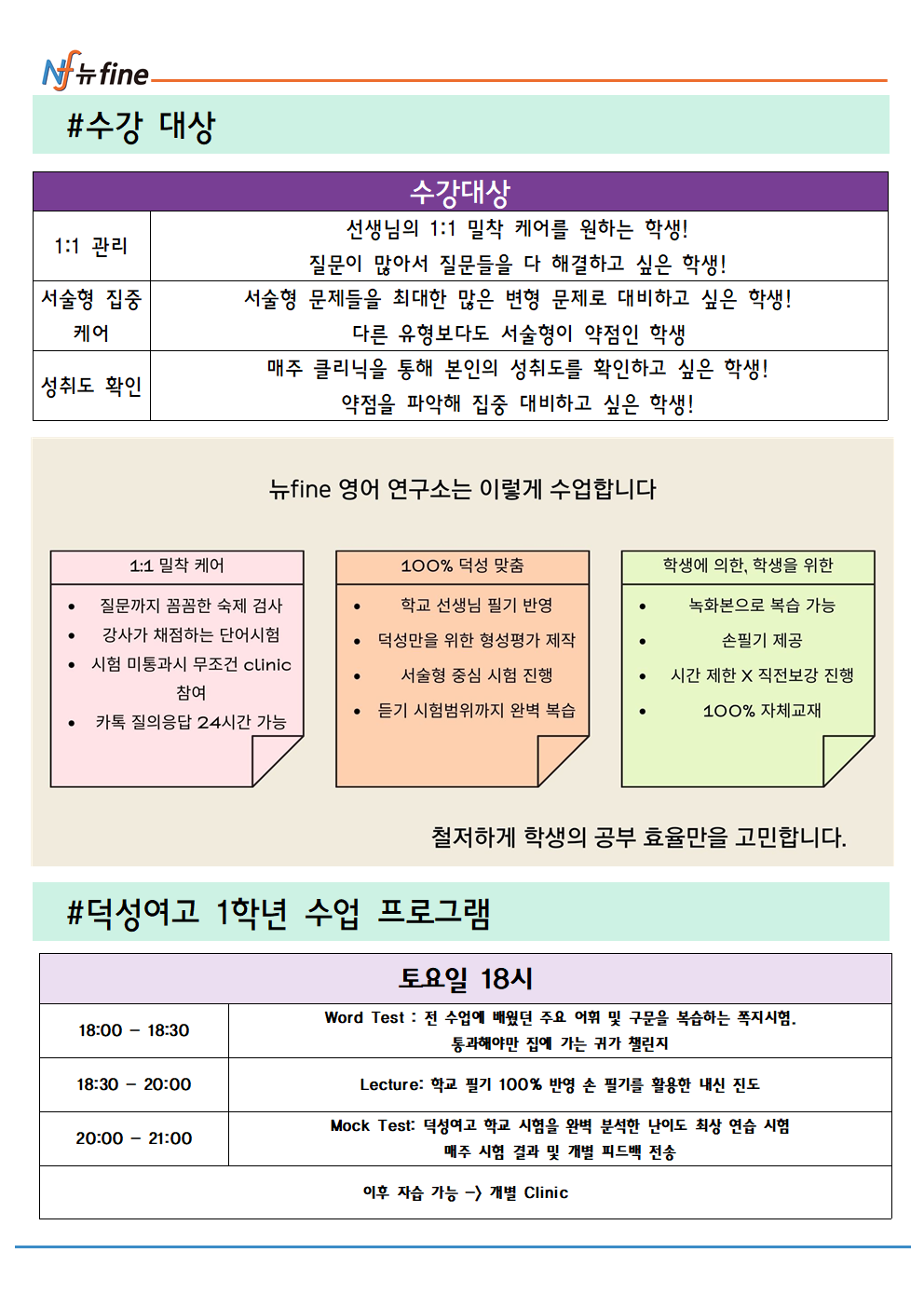 뉴파인학원(이하 ‘학원’)은 개인정보 보호법에 명기된 관련 법률 상의 개인정보처리자가 준수하여야 할 개인정보보호 규정을 준수하며, 관련 법령에 의거하여 이용자의 권익 보호에 최선을 다하고 있습니다. 아래 내용을 충분히 숙지하신 후 본인이 직접 동의란에 서명해 주시기 바랍니다.