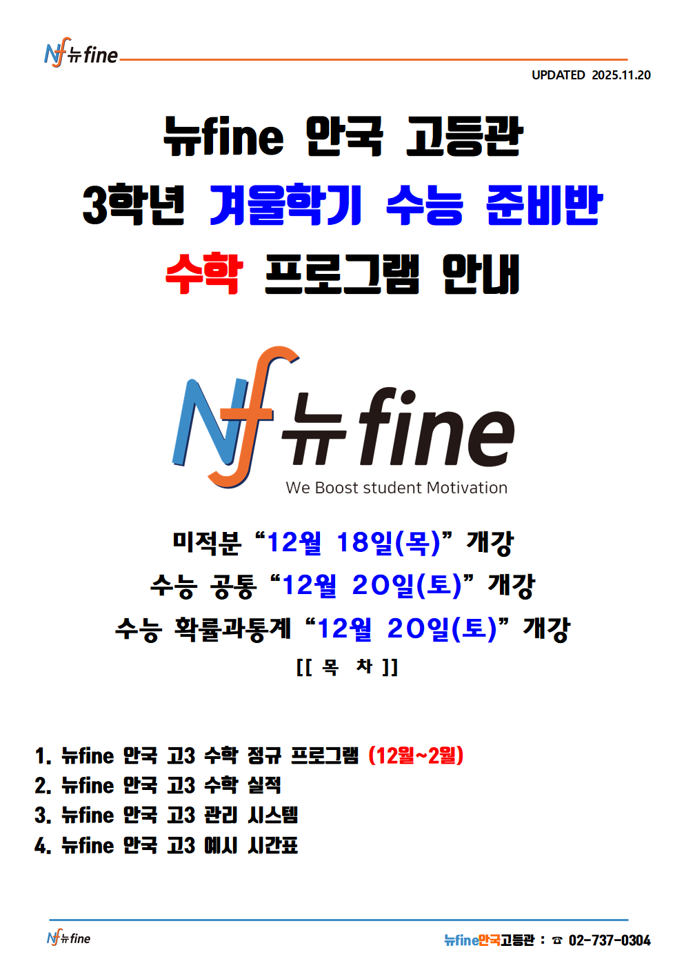 뉴파인학원(이하 ‘학원’)은 개인정보 보호법에 명기된 관련 법률 상의 개인정보처리자가 준수하여야 할 개인정보보호 규정을 준수하며, 관련 법령에 의거하여 이용자의 권익 보호에 최선을 다하고 있습니다. 아래 내용을 충분히 숙지하신 후 본인이 직접 동의란에 서명해 주시기 바랍니다.
