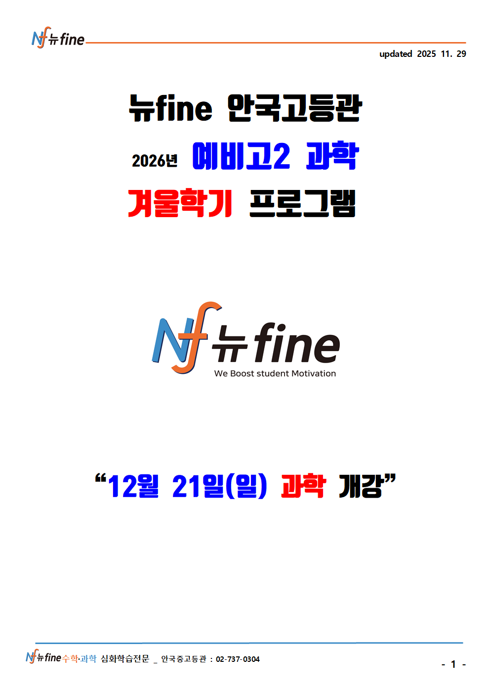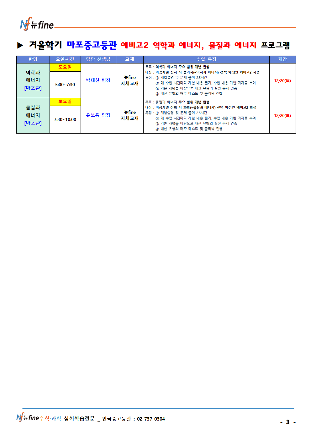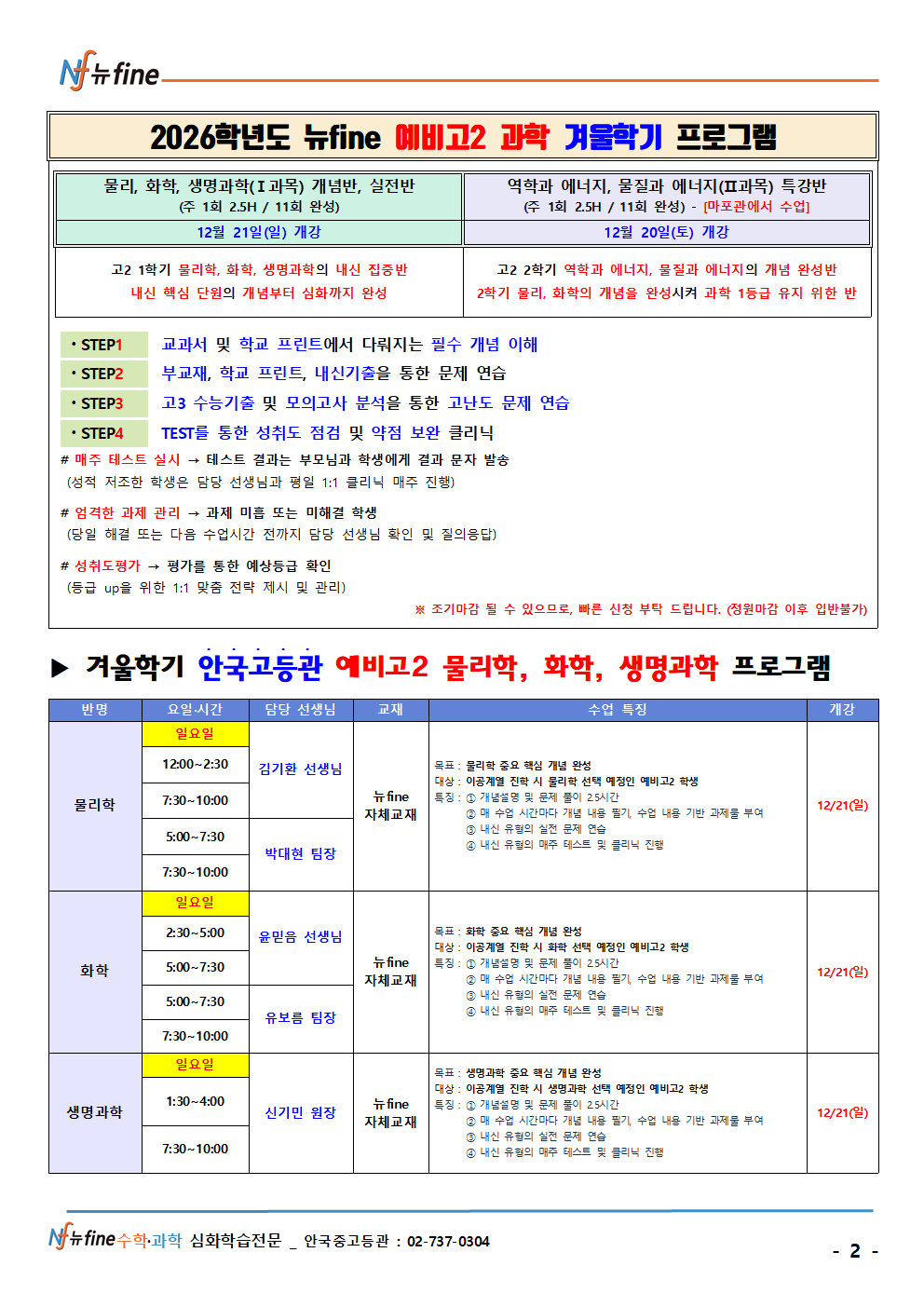 겨울학기 고2(현 고1) 과학 프로그램