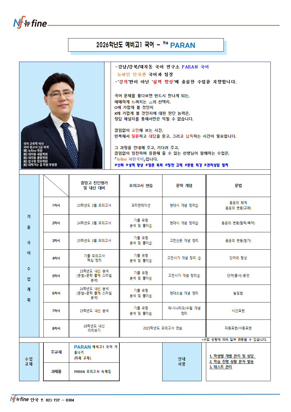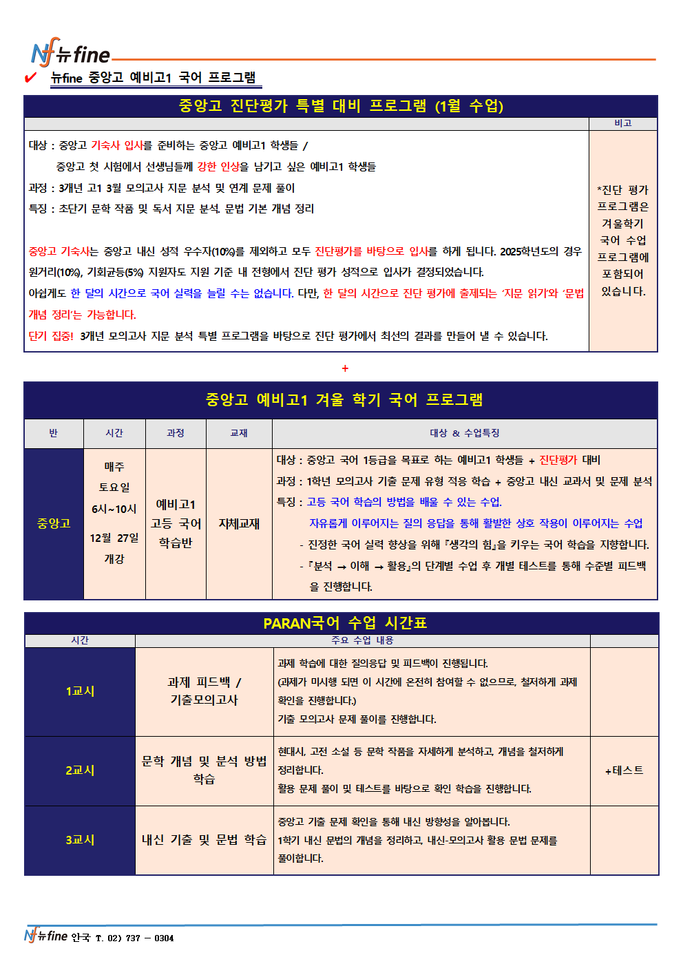 겨울학기 고1(현 중3) 국어 프로그램 (1월 진단고사 수업)