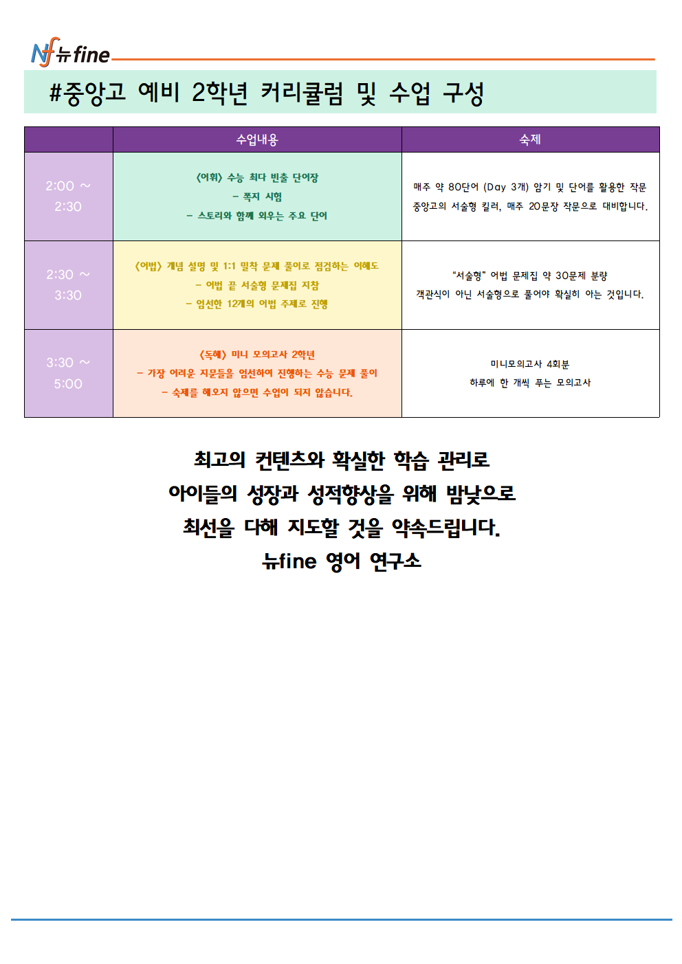 뉴파인학원(이하 ‘학원’)은 개인정보 보호법에 명기된 관련 법률 상의 개인정보처리자가 준수하여야 할 개인정보보호 규정을 준수하며, 관련 법령에 의거하여 이용자의 권익 보호에 최선을 다하고 있습니다. 아래 내용을 충분히 숙지하신 후 본인이 직접 동의란에 서명해 주시기 바랍니다.