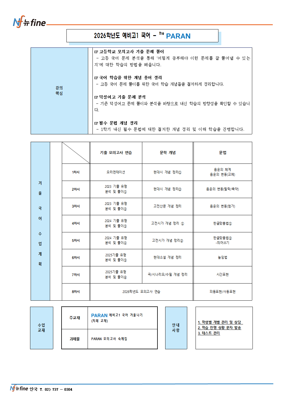 겨울학기 고1(현 중3) 국어 프로그램