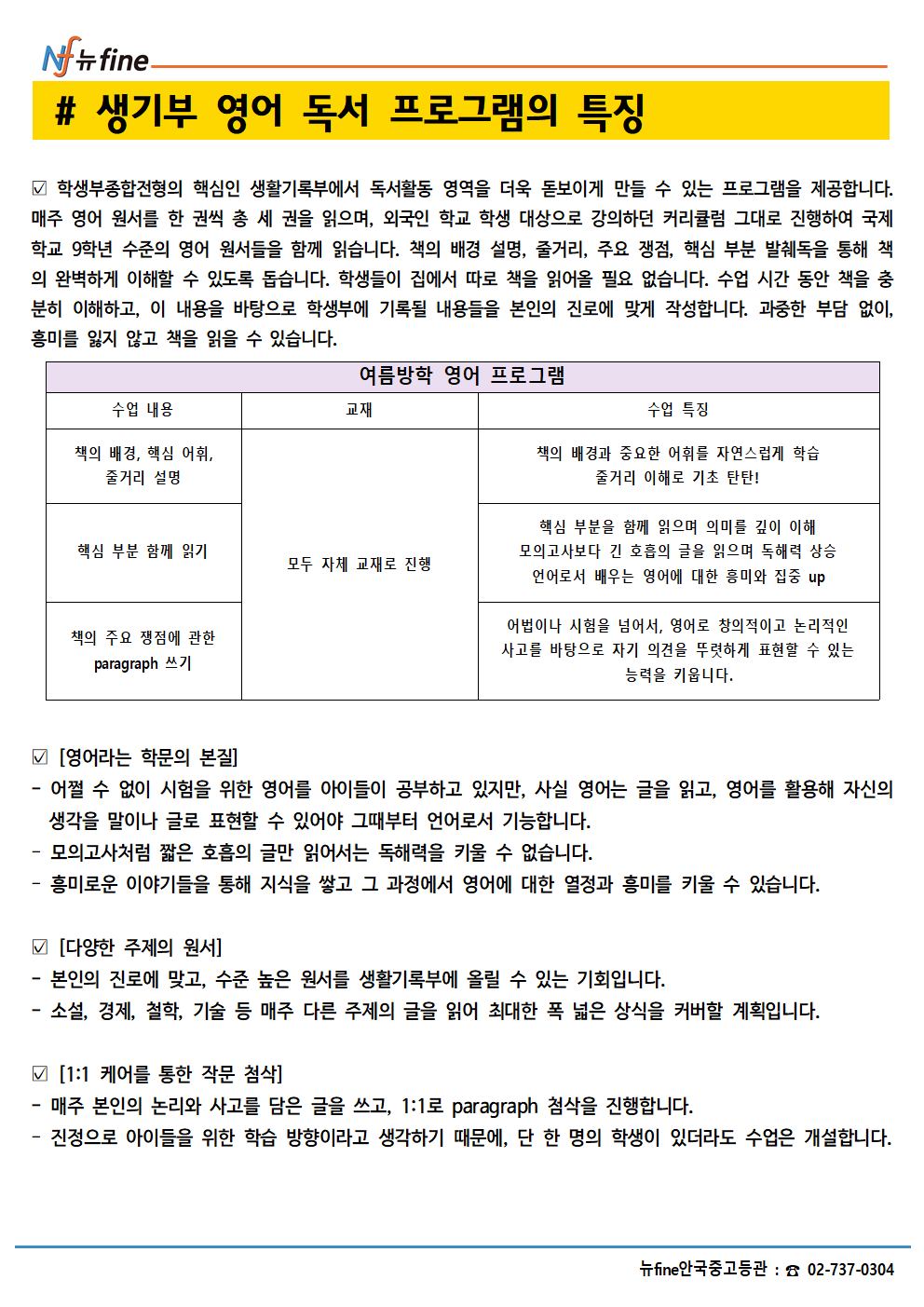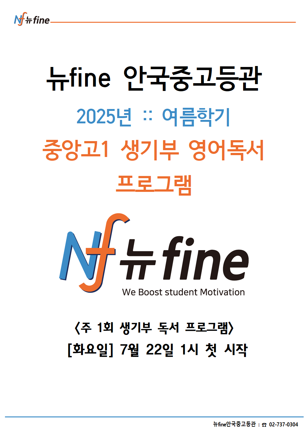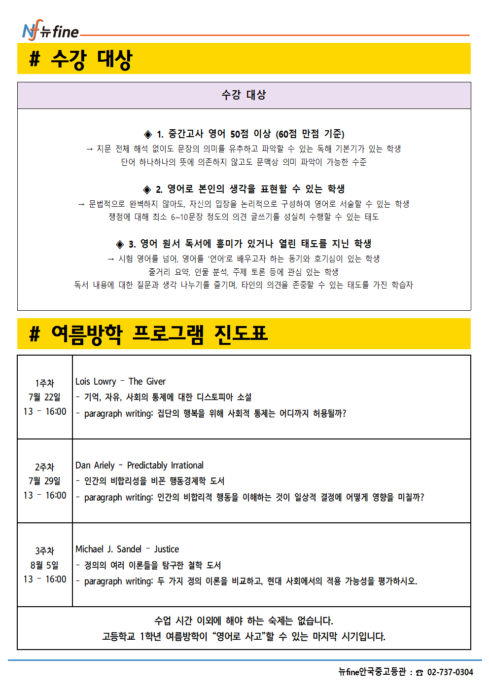 2025학년도 중앙고1 영어독서반 여름학기 영어프로그램