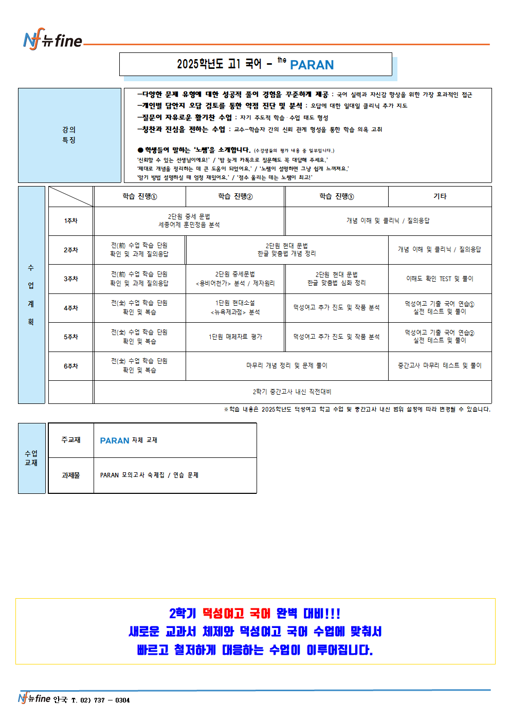 2025학년도 덕성여고1 가을학기 국어프로그램