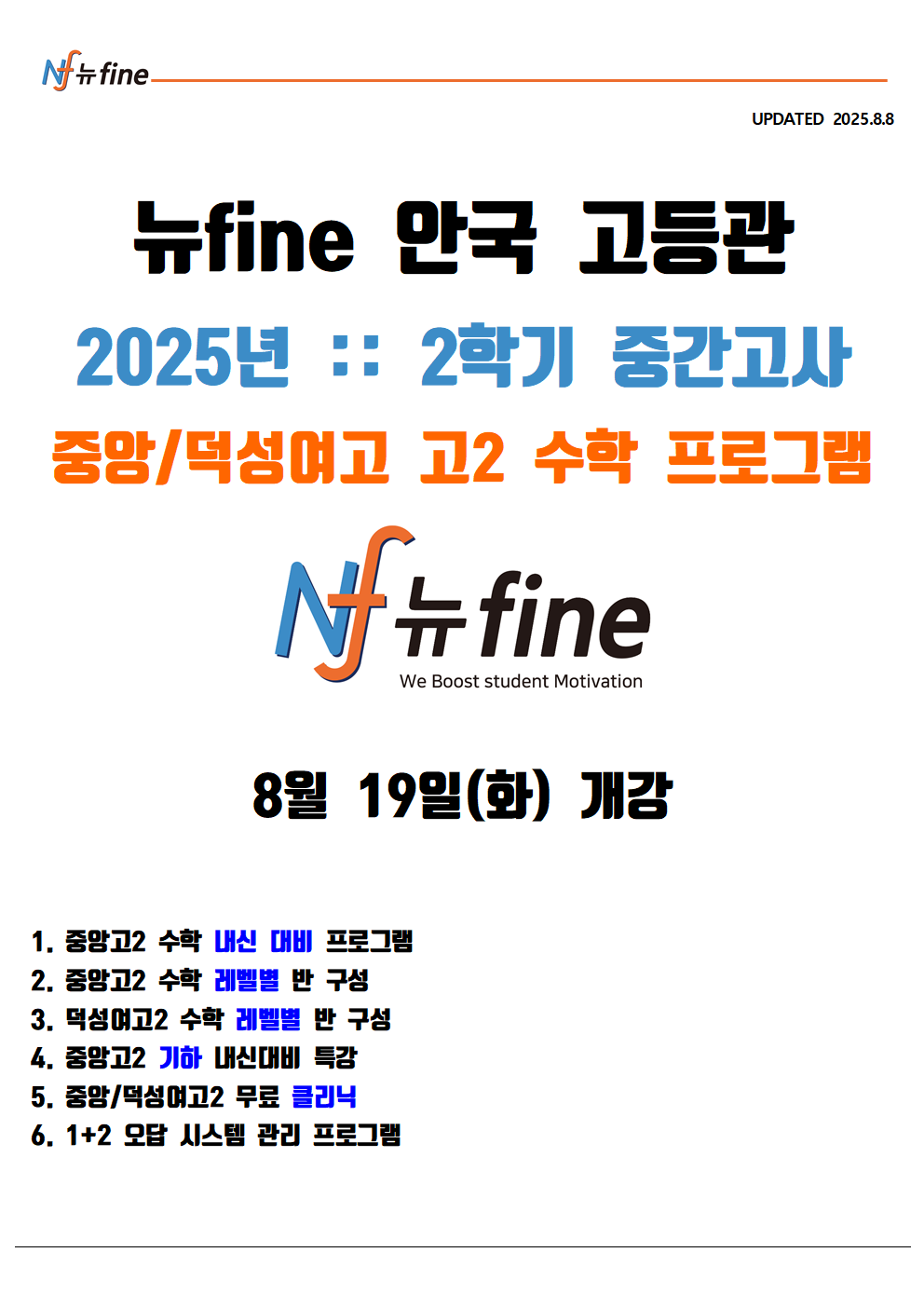 ※ 수강료 정규수학 등 2800분(월 600,000)/ 3150분(월 675,000원) (수업시수에 따라 수업료는 달라질 수 있습니다. 수익자 부담경비 별도입니다.) 그 외 수강료 홈페이지 게시함.