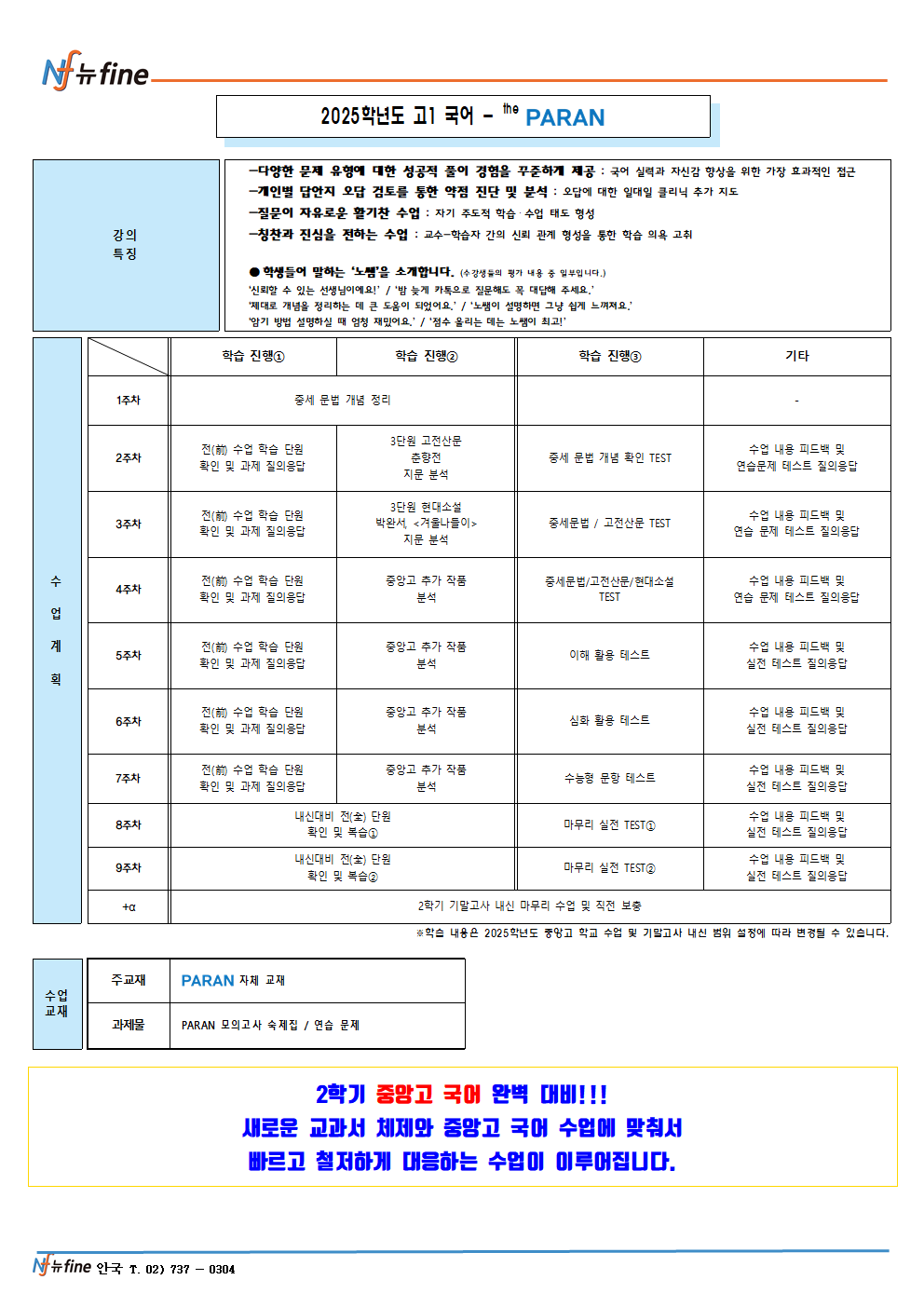 2025학년도 중앙고1 2학기 기말고사 국어프로그램