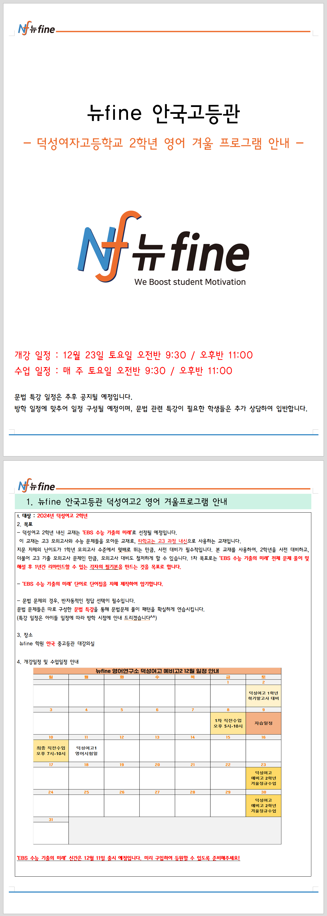 뉴파인안국중고등학원