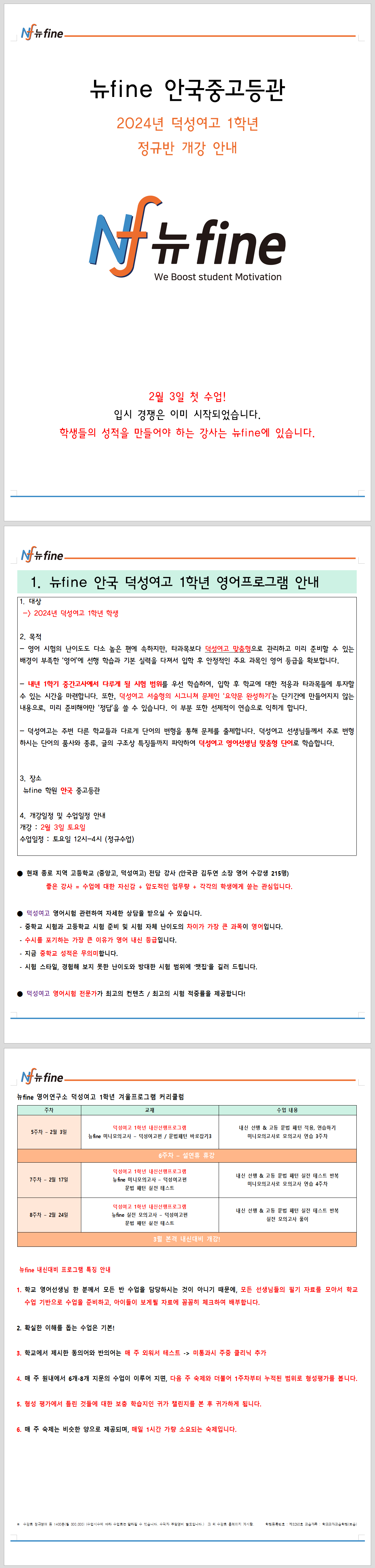 뉴파인학원(이하 ‘학원’)은 개인정보 보호법에 명기된 관련 법률 상의 개인정보처리자가 준수하여야 할 개인정보보호 규정을 준수하며, 관련 법령에 의거하여 이용자의 권익 보호에 최선을 다하고 있습니다. 아래 내용을 충분히 숙지하신 후 본인이 직접 동의란에 서명해 주시기 바랍니다.