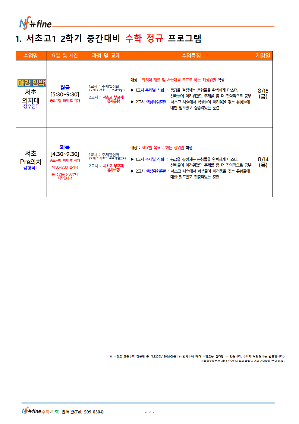 뉴파인반포고특별관학원