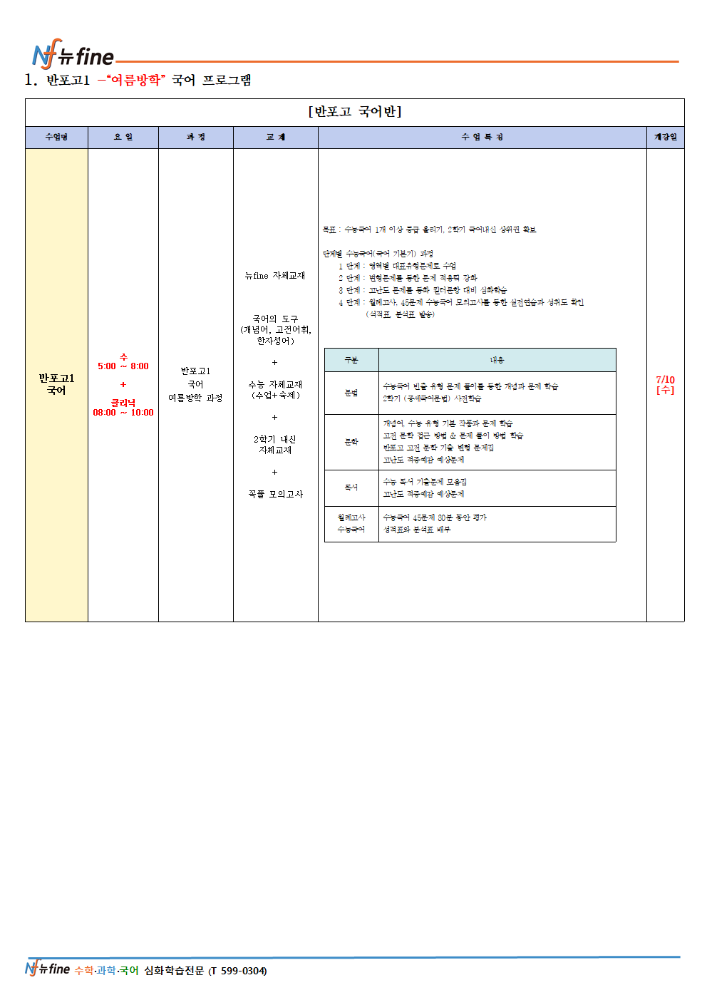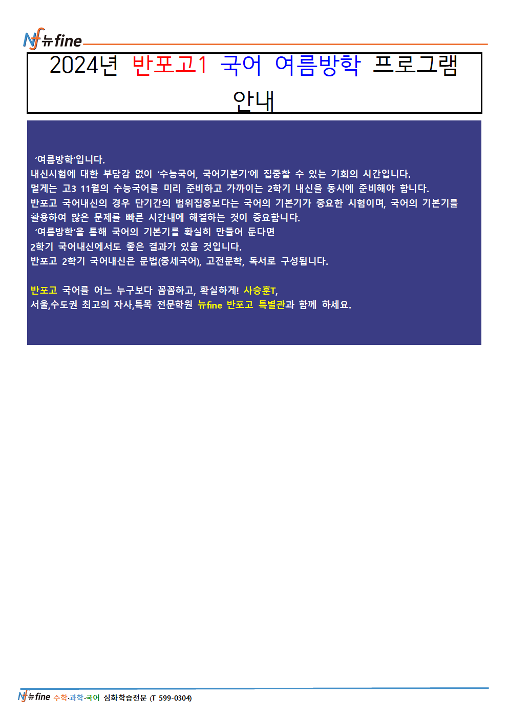 뉴파인반포고특별관학원