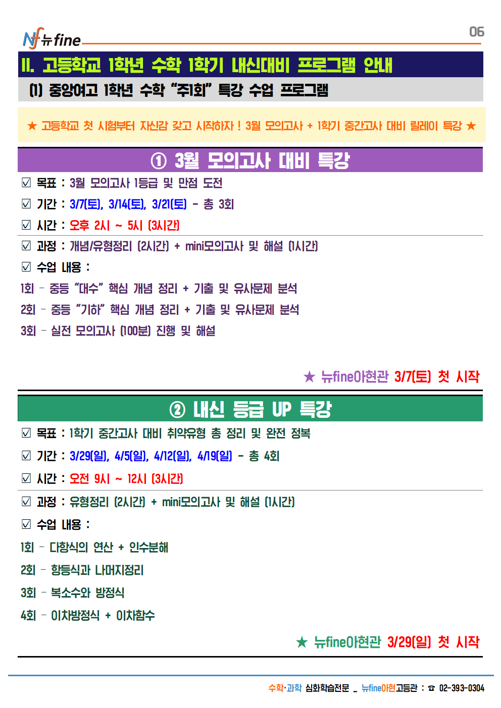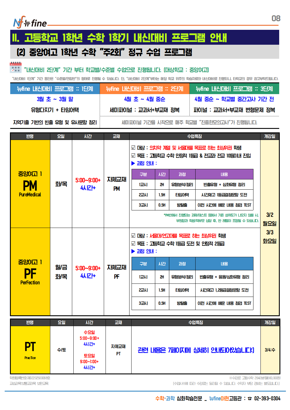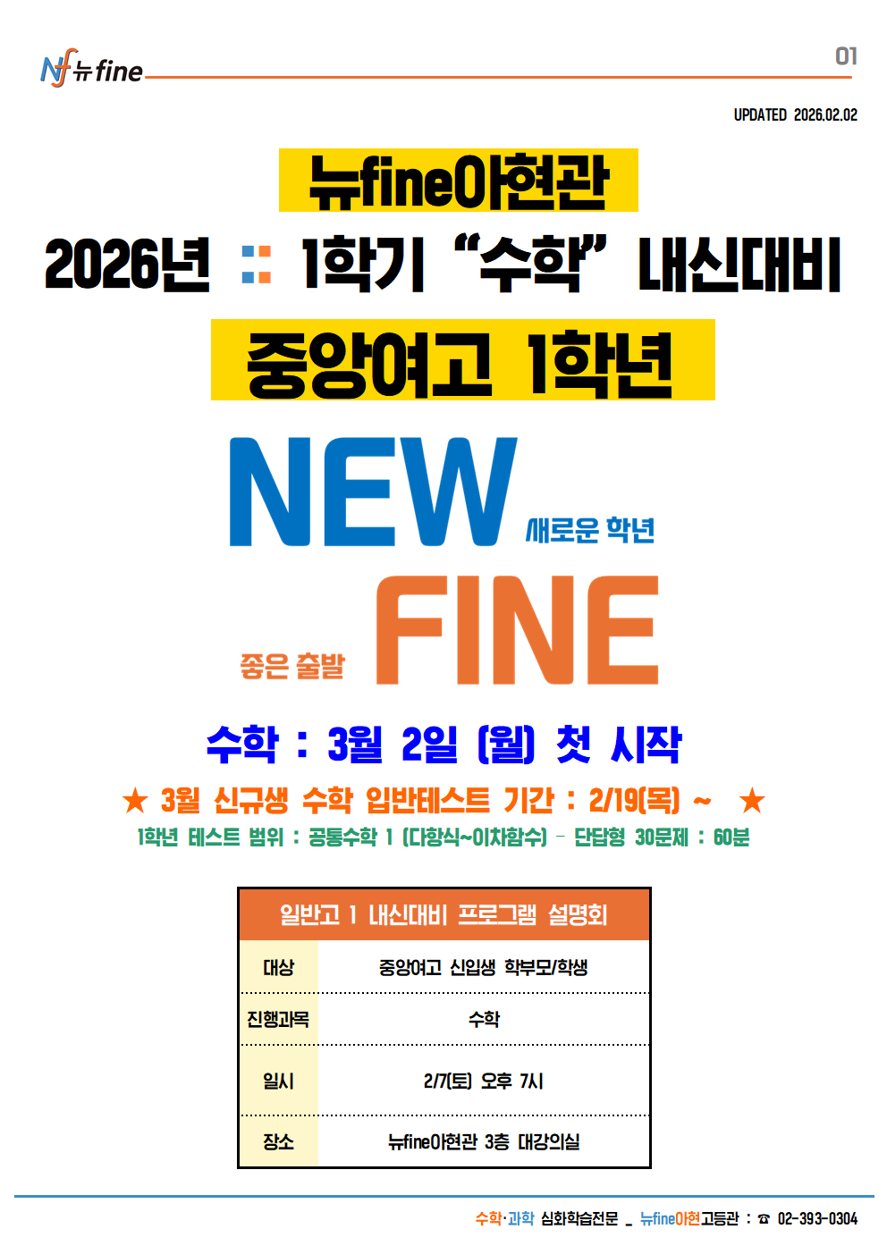 2026년 아현관 중앙여고1수학 프로그램(3월개강)
