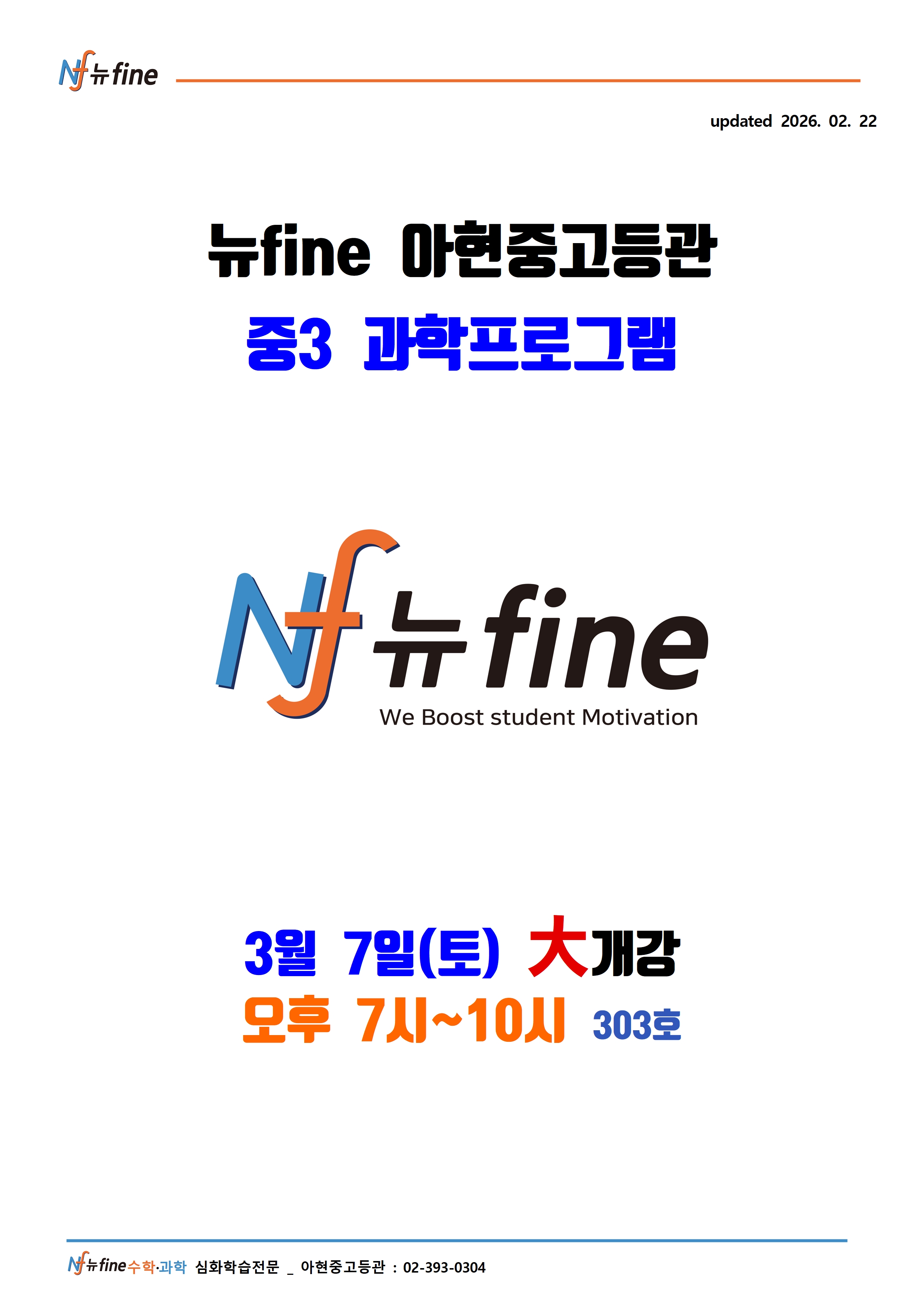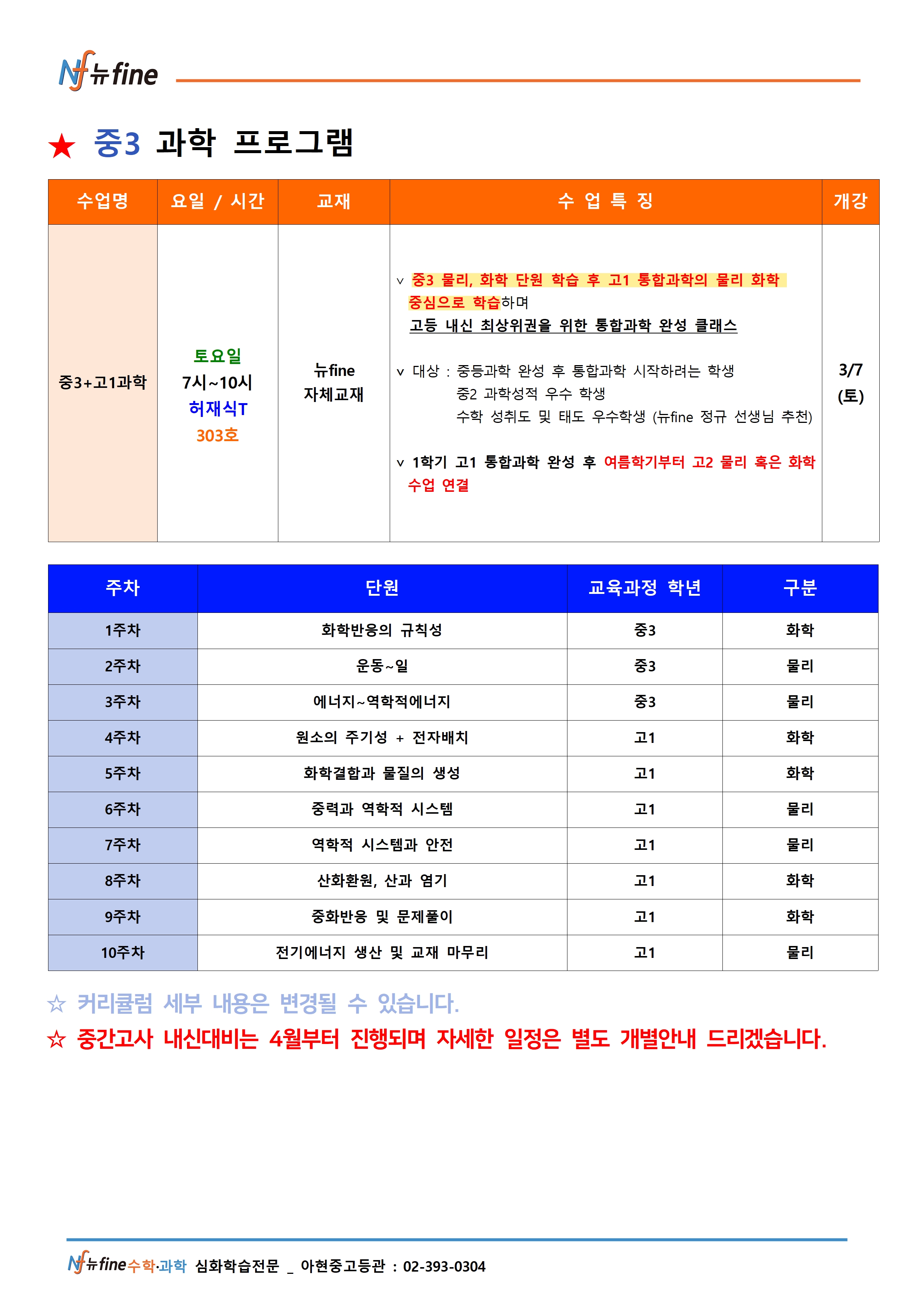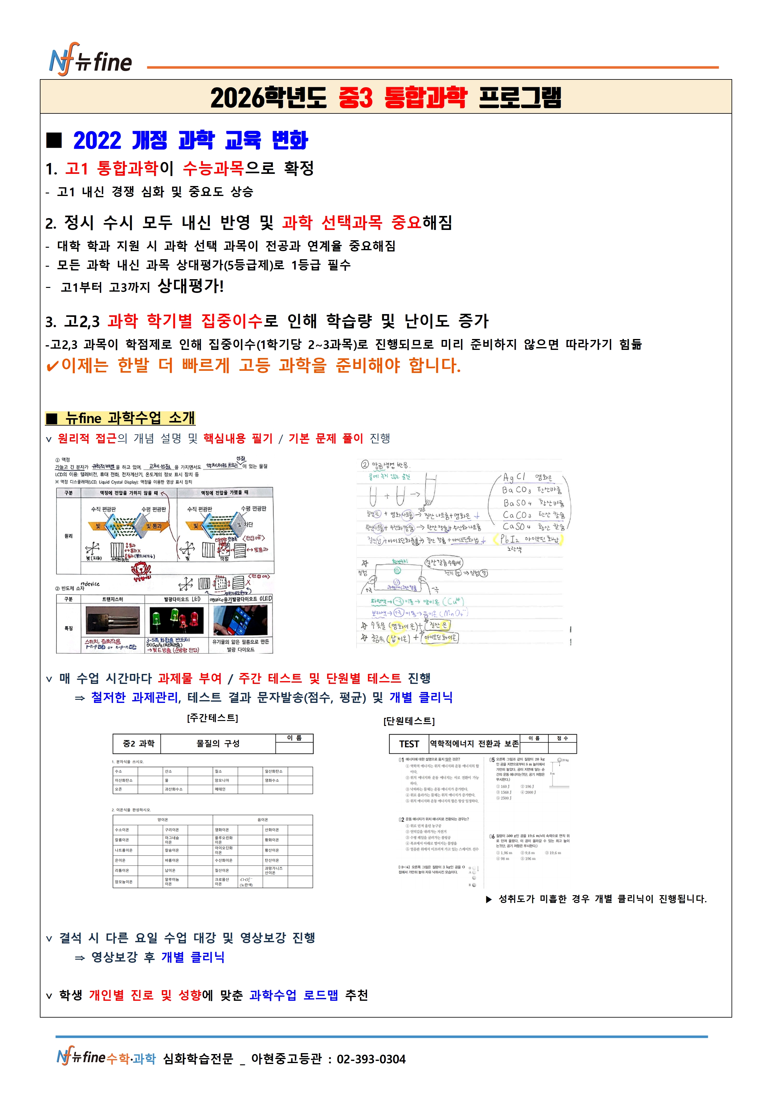 2026년 아현관 중3 과학프로그램(3월개강)