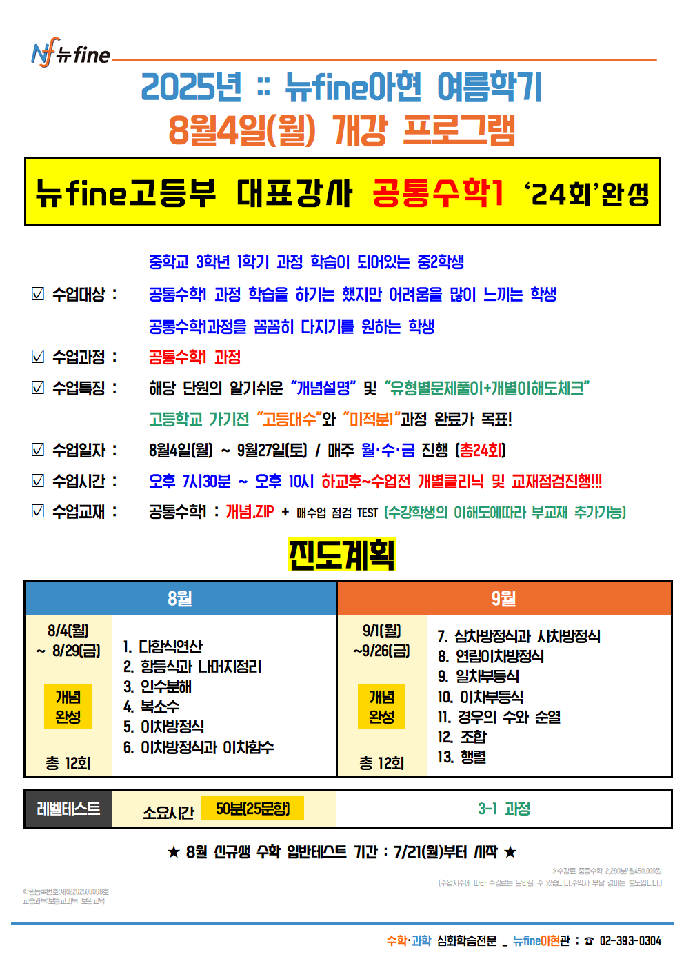 2025년 아현관 중2 수학 8월 개강 프로그램 (공통수학1)