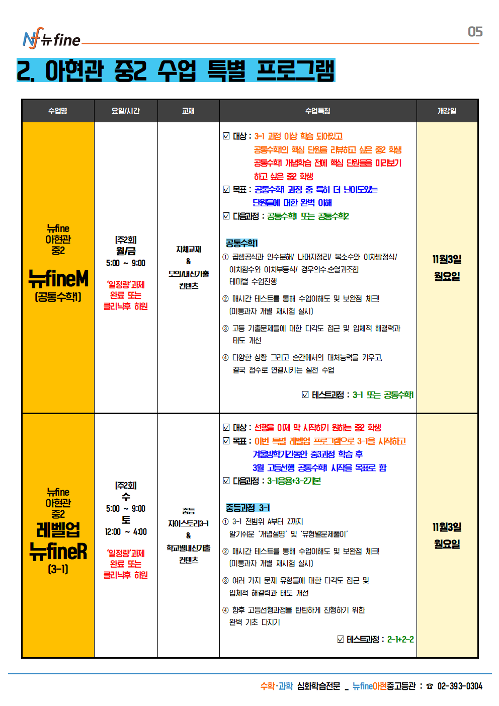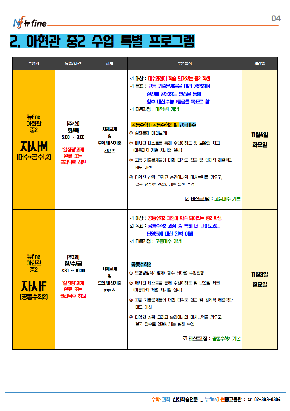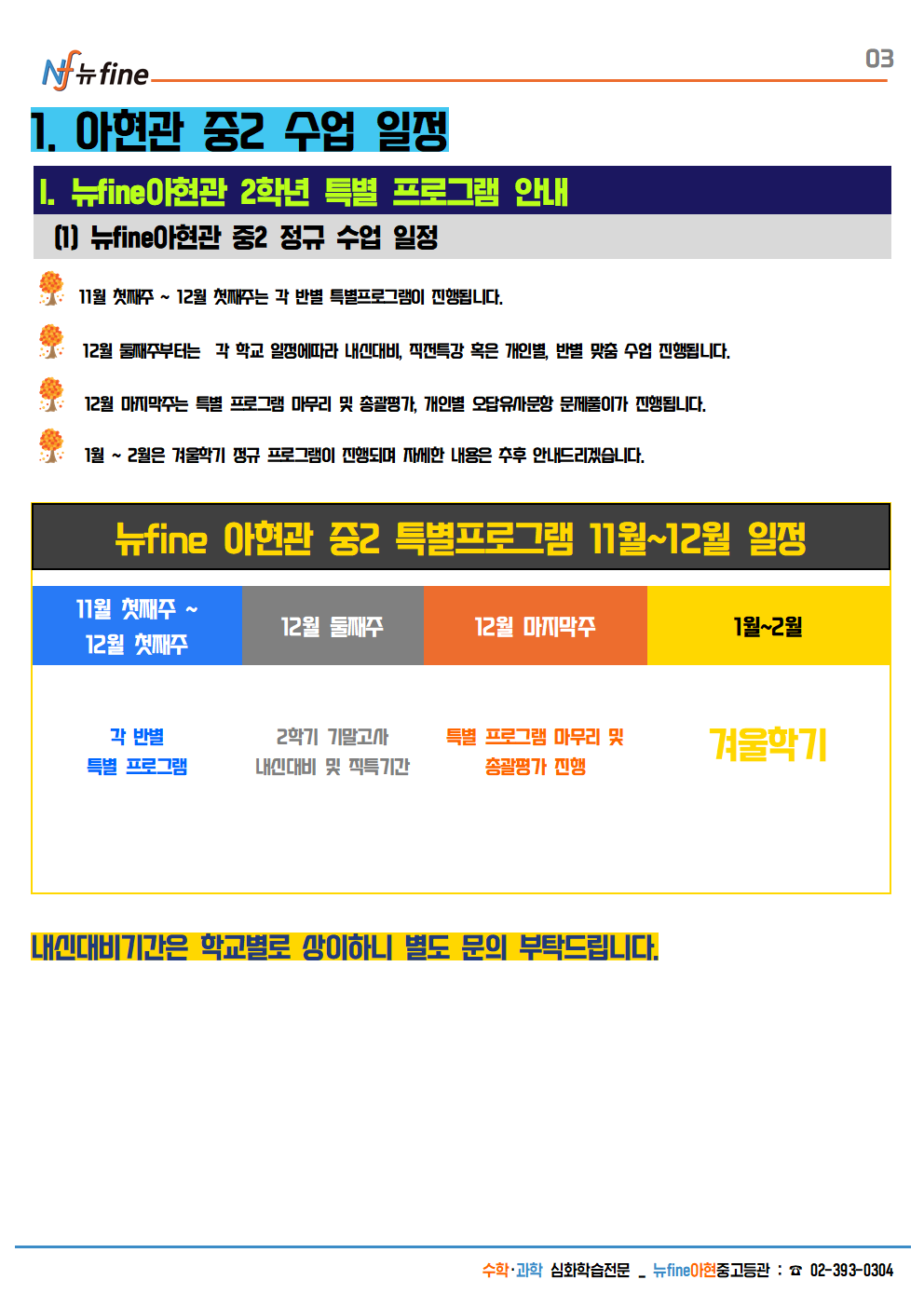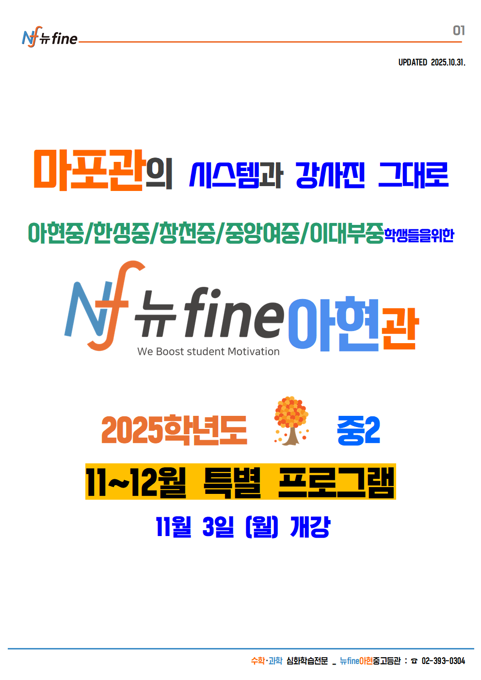 2025학년도 아현관 11월~12월 중2 특별 프로그램
