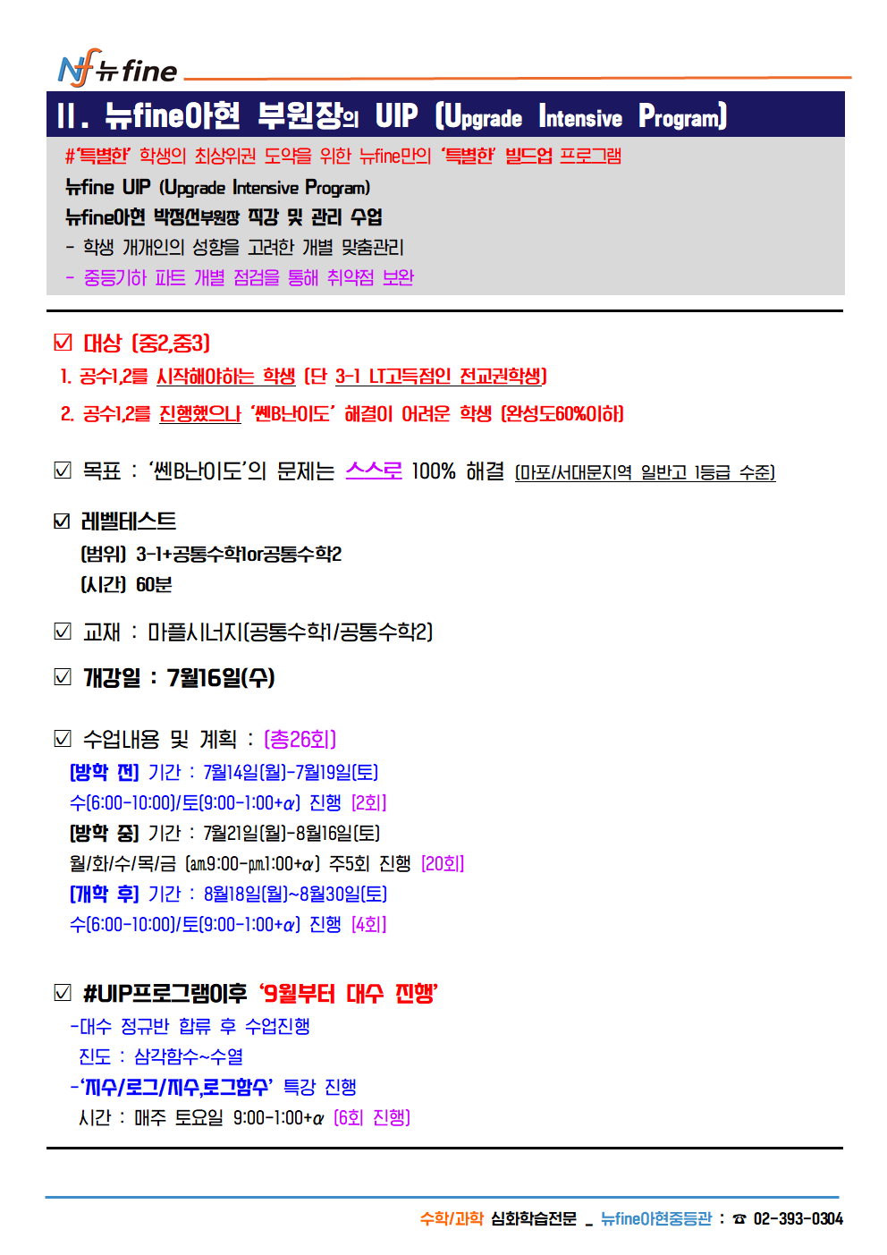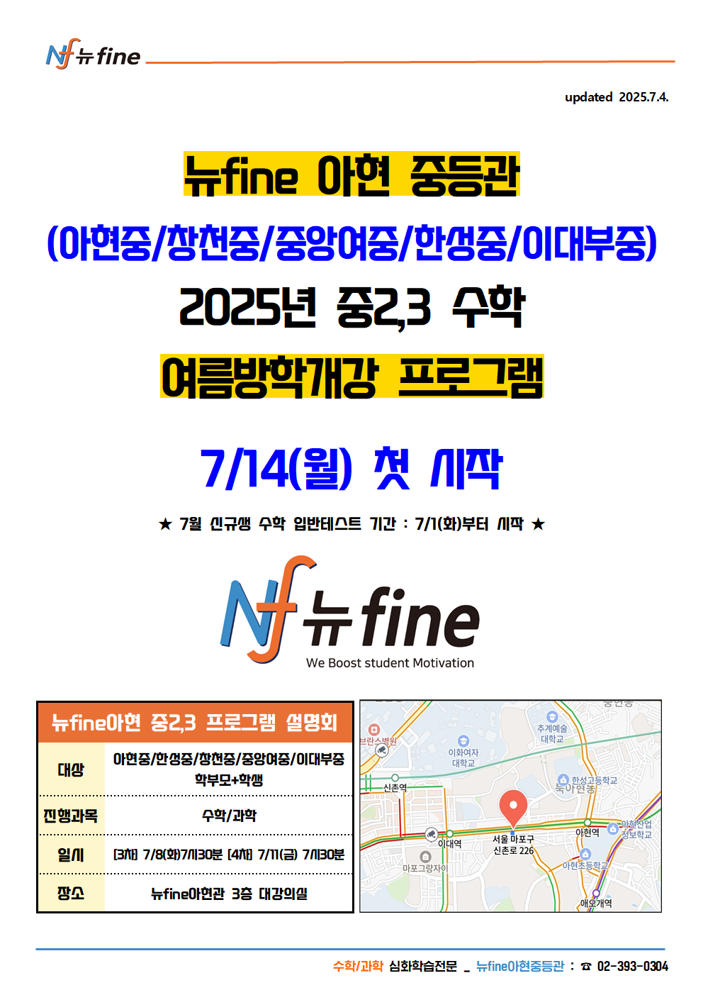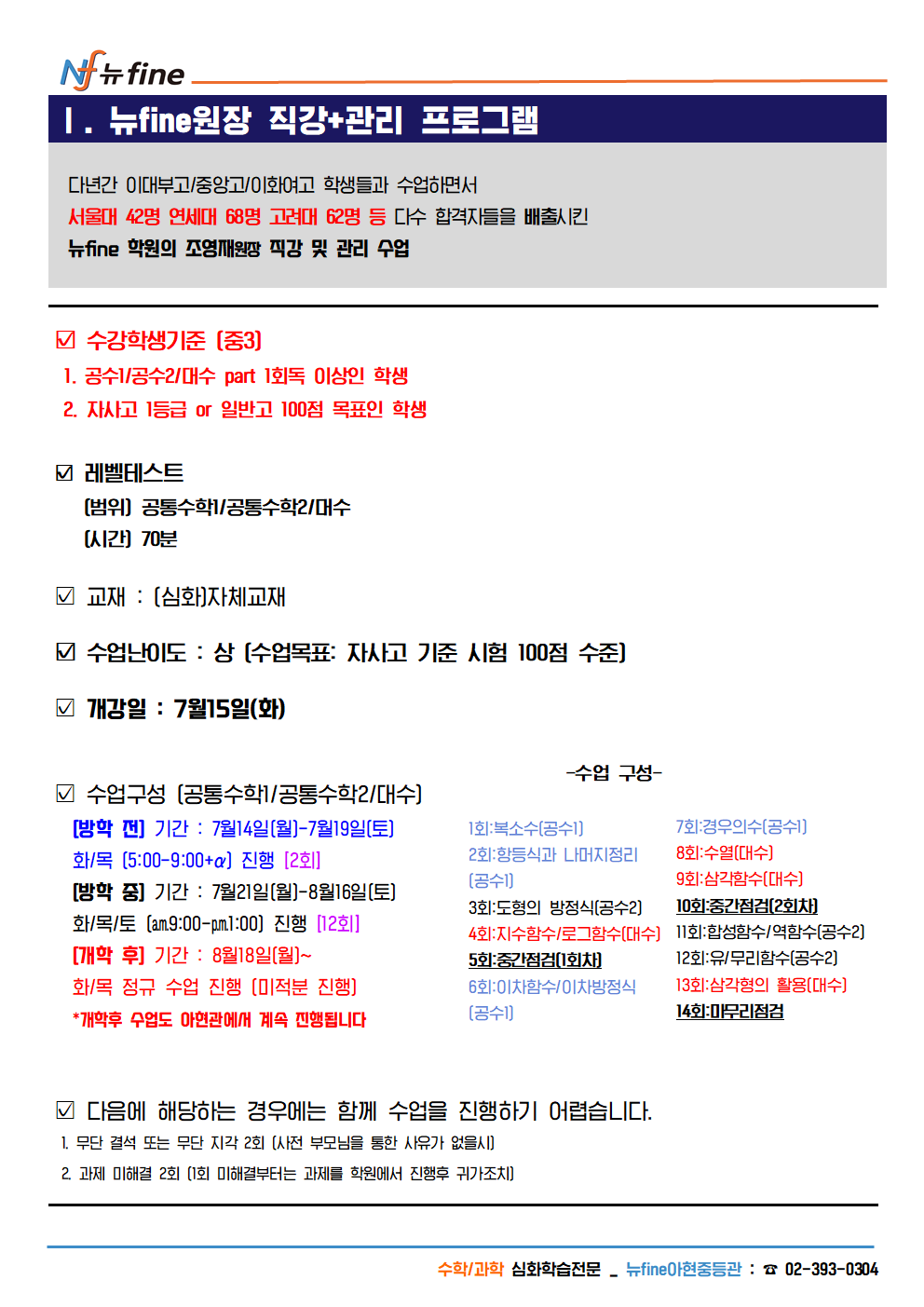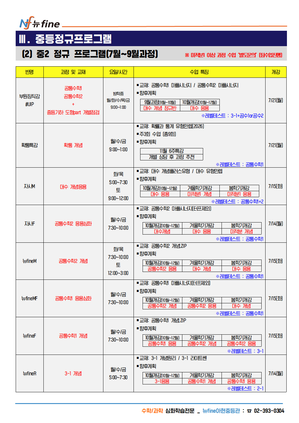 2025년 아현관 중2,3 수학 여름방학 개강 프로그램