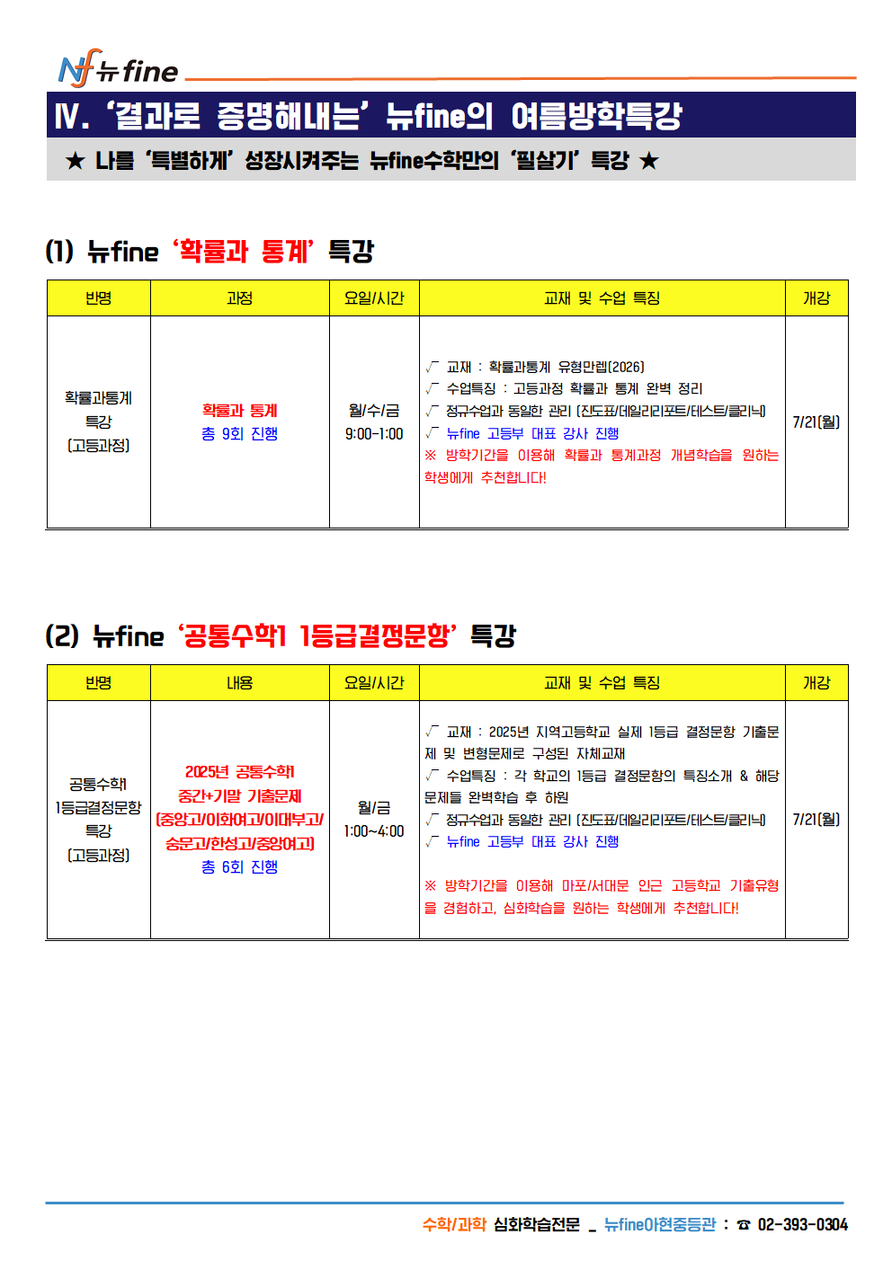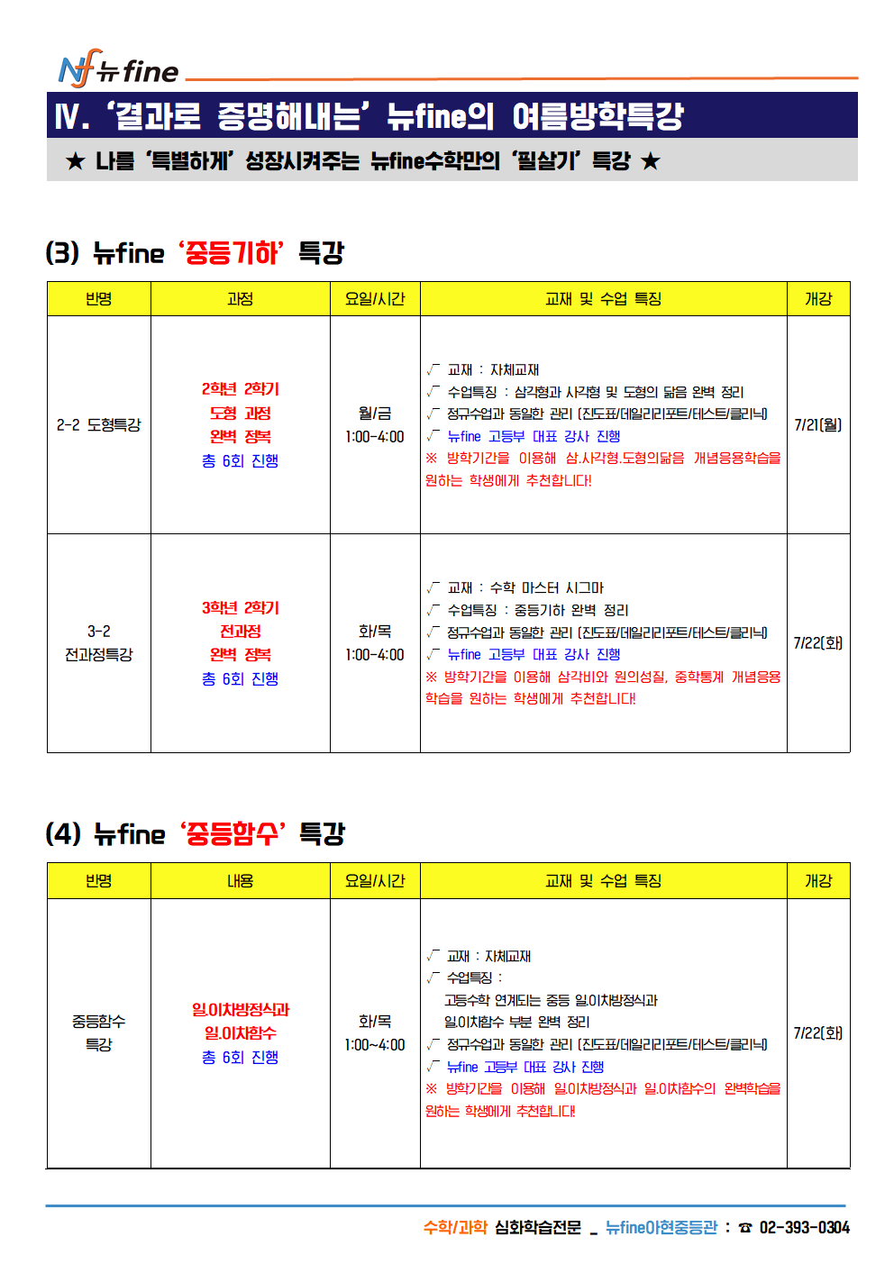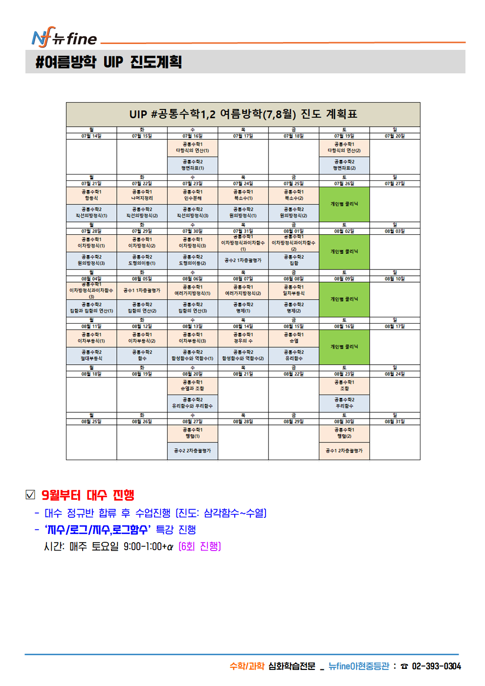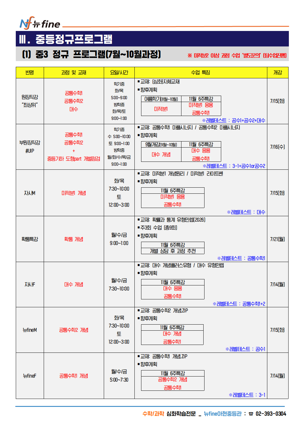 2025년 아현관 중2,3 수학 여름방학 개강 프로그램