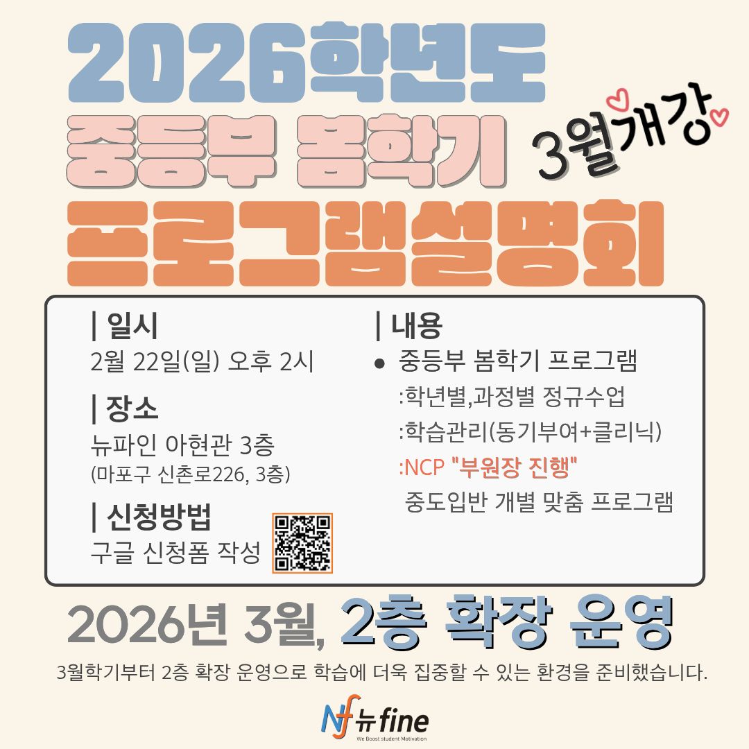 - [뉴fine아현] 2026년 봄학기 중등 프로그램 설명회